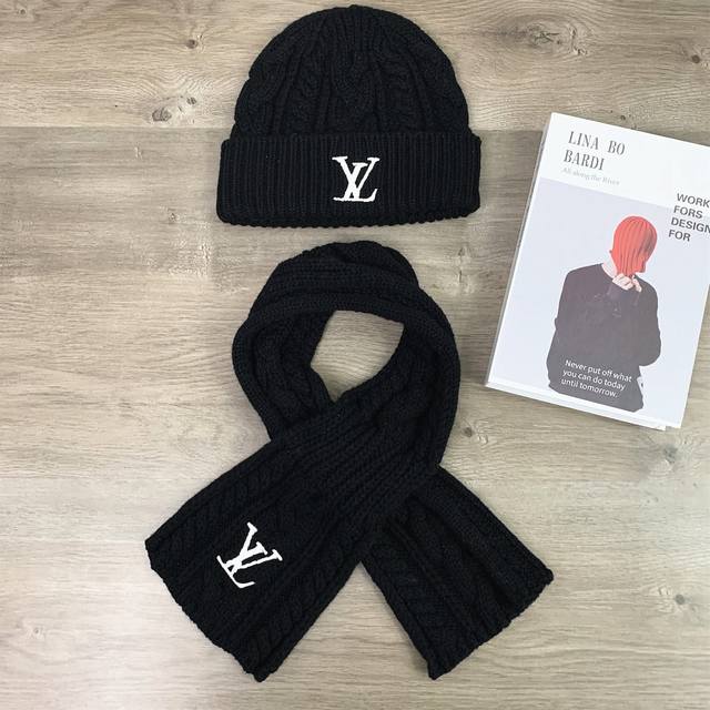 9879# #LV Knitted Hat and Scarf 2-Piece Set for Autumn and Winter, Unisex Knitte
