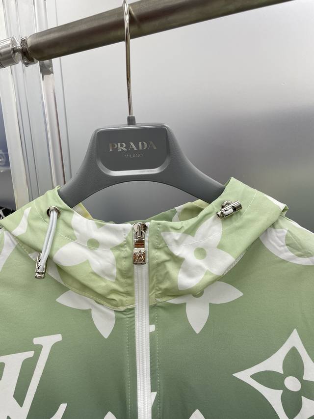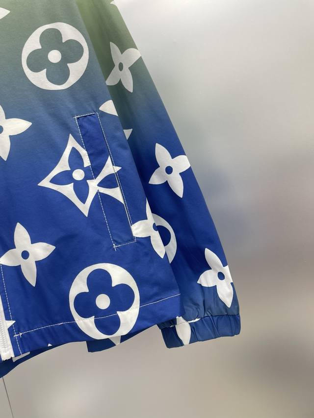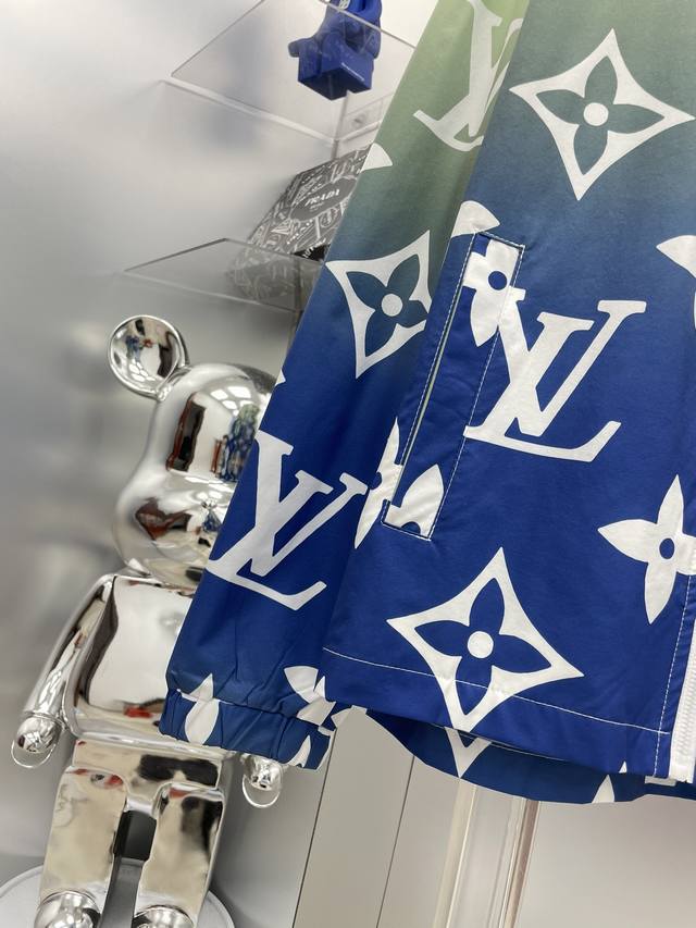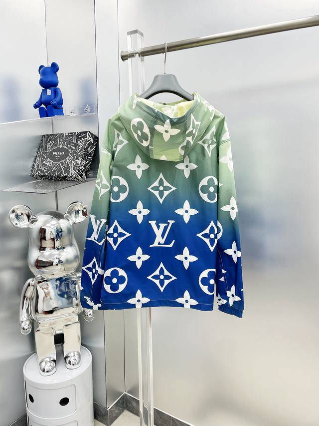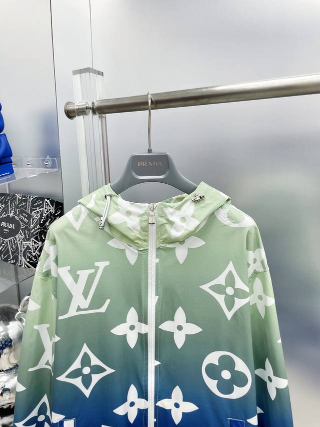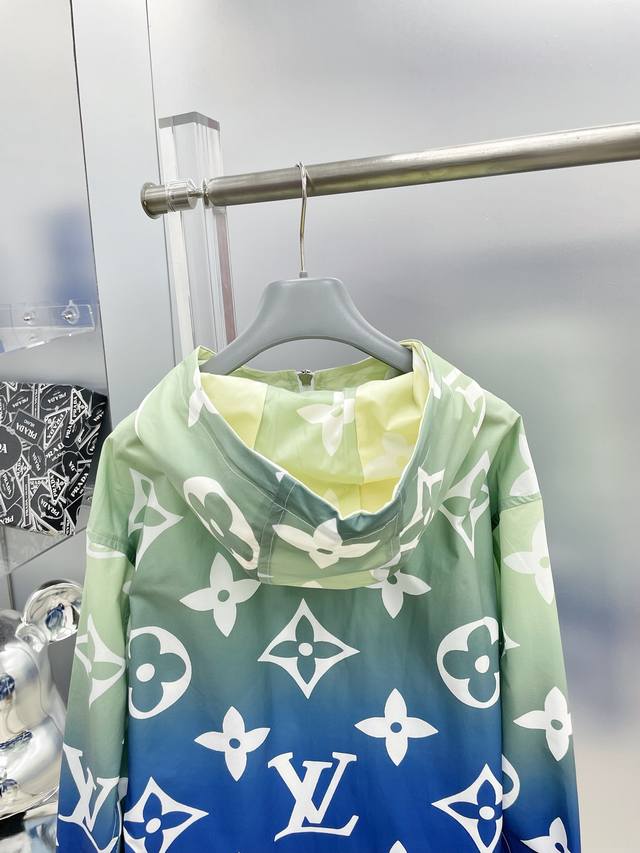A complete set of Louis 2025 summer new all-over print gradient sun protection clothing set, shorts and hooded jacket. Made of imported lightweight nylon technical fabric, 3D print, soft and comfortable to wear, and super lightweight! The style is fashionable and stylish, all hardware is custom-supplied, and the zipper is engraved with the brand logo. Various details highlight the quality! It can be worn as an outer layer in spring and autumn, and it's also great for creating a stylish look! In summer, it can be used as a sun protection layer in air-conditioned rooms, practical and versatile. Sizes: M~XL. Model is 173cm tall and weighs 143kg, wearing size L.