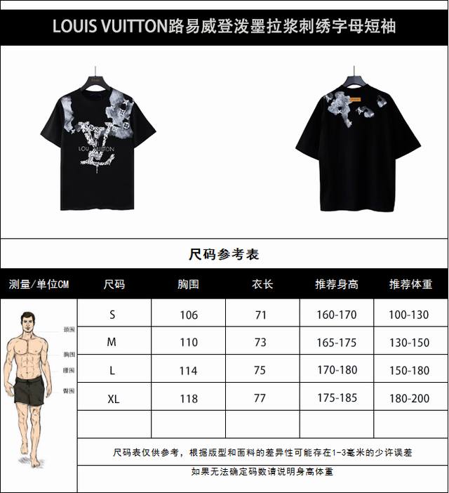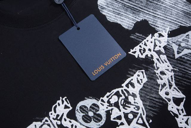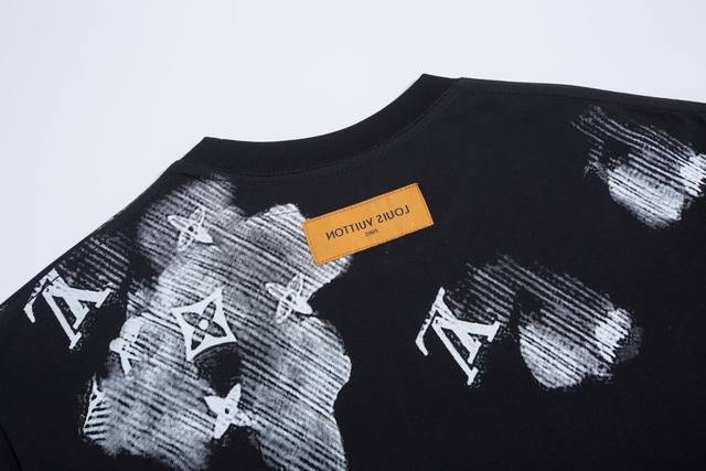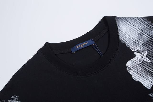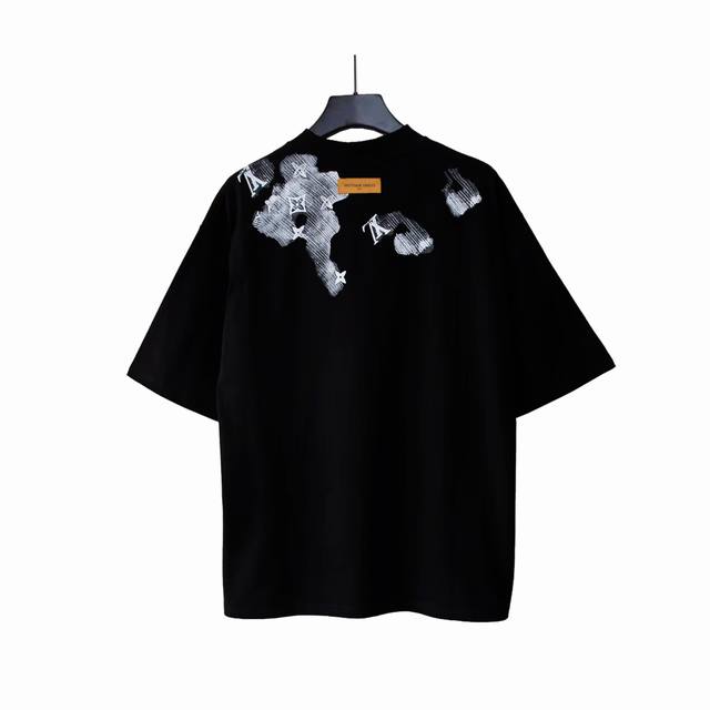 Louis Vuitton ink-splashed starched embroidered letter short sleeves