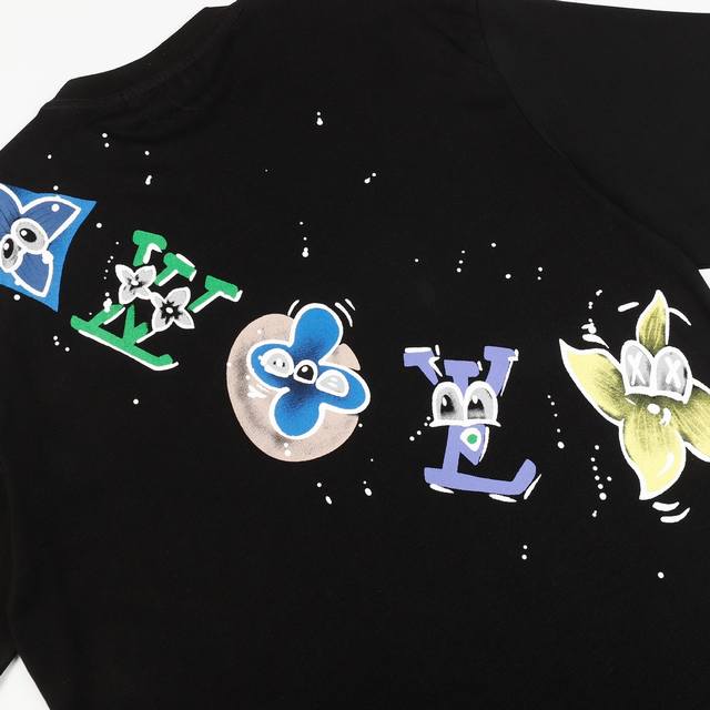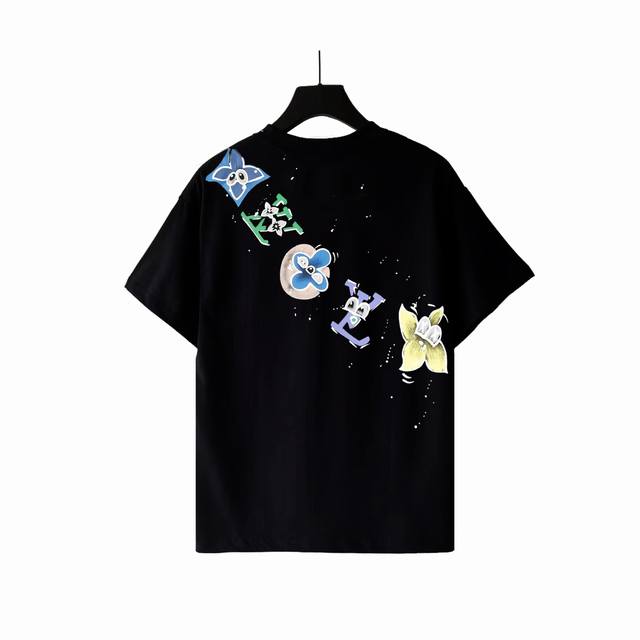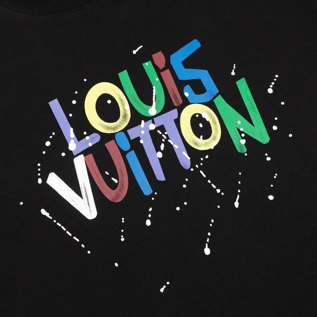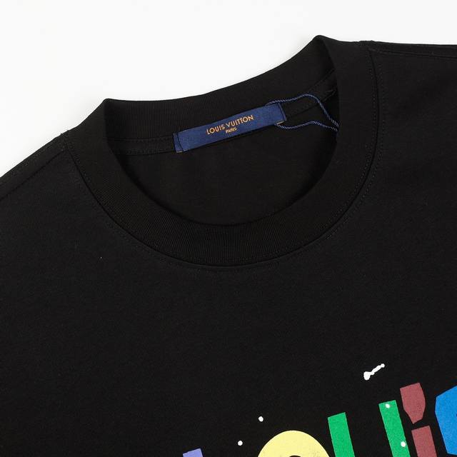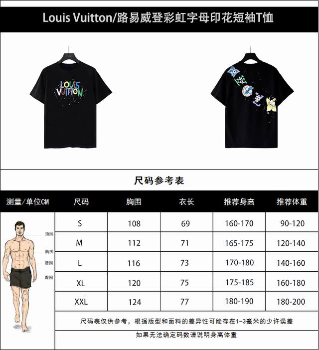Actual details + size chart Louis Vuitton Rainbow Letter Print Short-Sleeved T-S