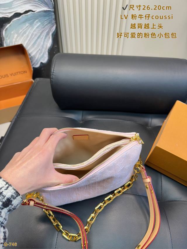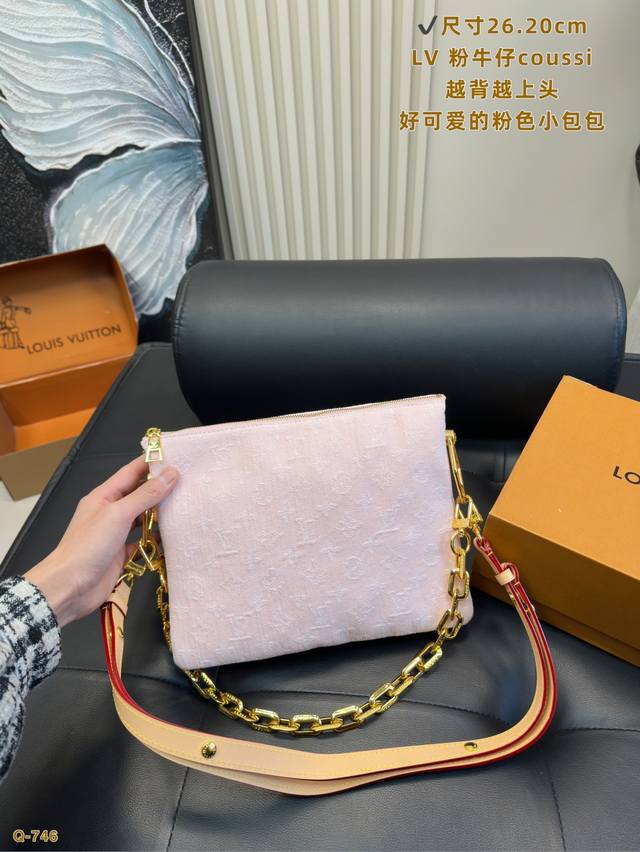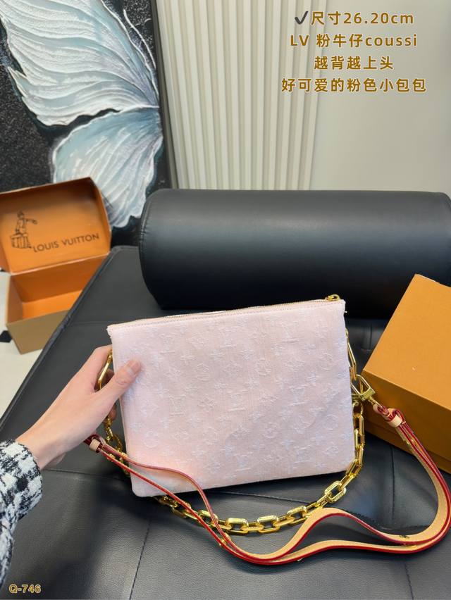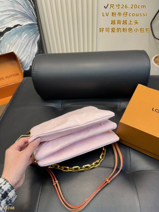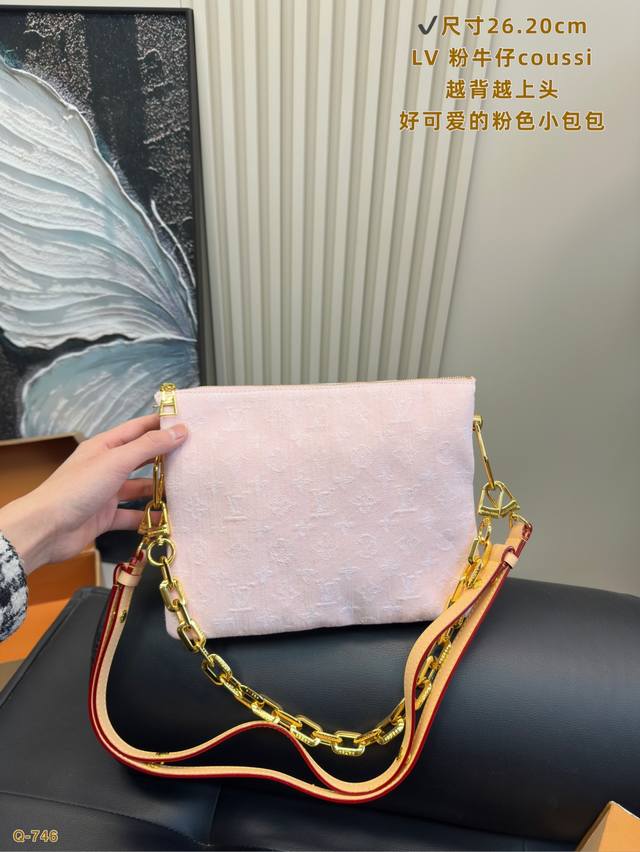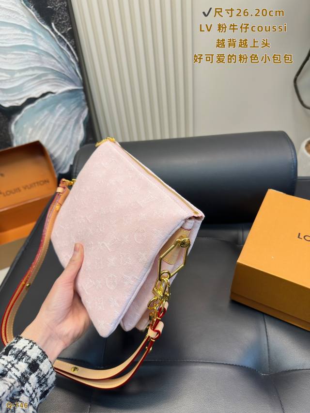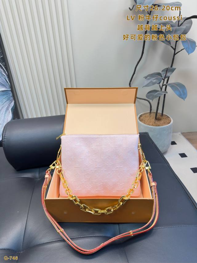 Comes with a full gift box. Size 26.20cm. Lv25Ss New Light Pink Denim Coussin. Super sweet! Gentle yet sophisticated. Exquisite bag shape, divided yet surprisingly spacious, multiple carrying options, comes with a metal chain. A perfect blend of functionality and style, an all-purpose bag for commuting and dates.