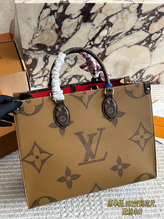 Comes with box. High-end couture version. Size: 34*26cm. Louis Vuitton Onthego tote bag. Features a hidden shoulder strap design; can be carried on the shoulder or by hand. Spacious and suitable for everyday use! All-steel hardware! Search for "Lv Onthego tote bag" .