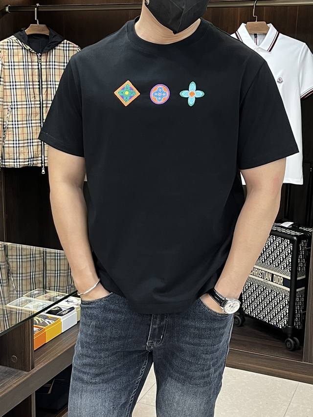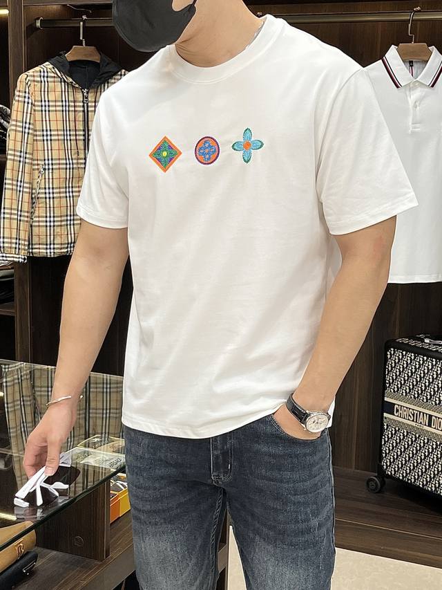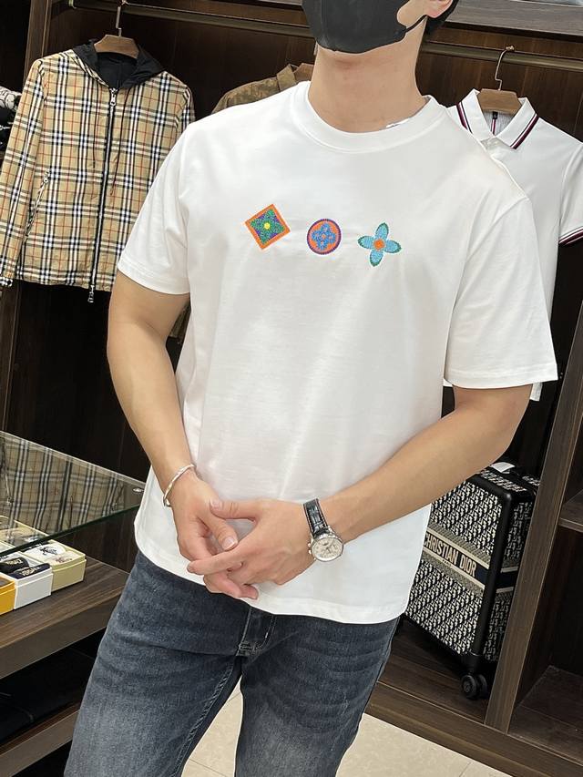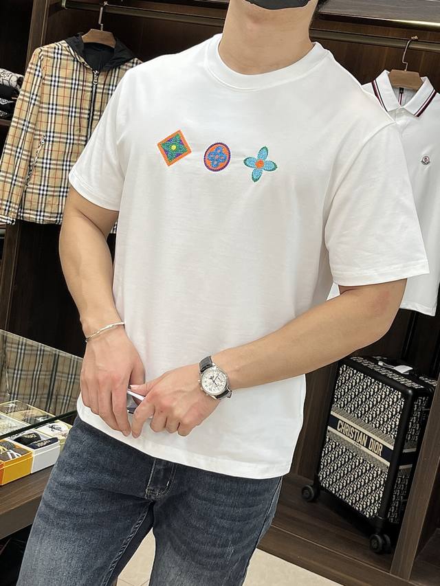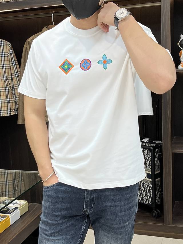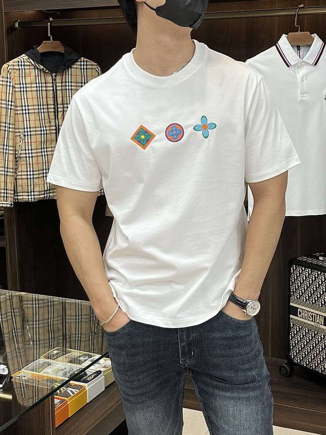 Constant Stock! High-quality July must-have, Lv exclusive autumn new arrival, fashionable casual crew neck short-sleeved T-shirt, high-density 320g pure cotton fabric, high-grade dense needle embroidery, high-end European original single T-shirt, trendy and fashionable casual short sleeves with high breathability and comfort, impeccable details, brand elements and design concept, reflecting high quality. Presenting a casual cut, the fit is superb! Sizes: M-3XL