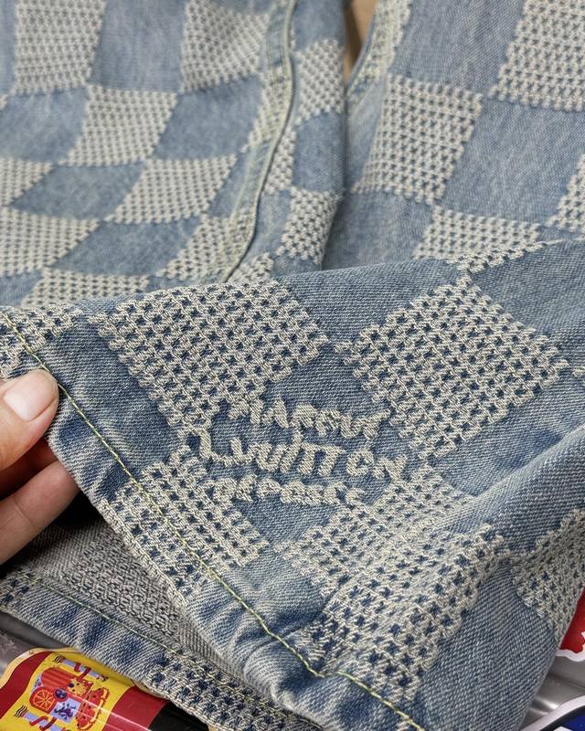 . Custom Yb twill cotton denim fabric. Loose, stylish cut. Contrasting light and dark checkered jacquard texture. High-end and fashionable. Double chest pockets accent the overall shape. Jacquard lettering highlights the brand's tone. Stylish everyday wear with skirts and pants. High-end loose fit. Unisex custom fabric. Look for the original