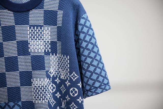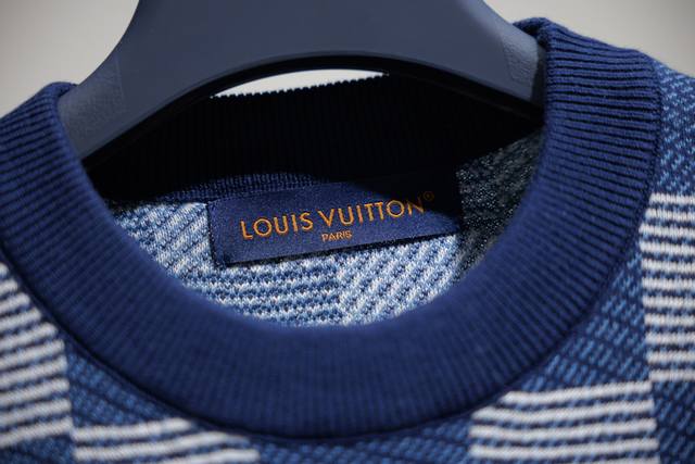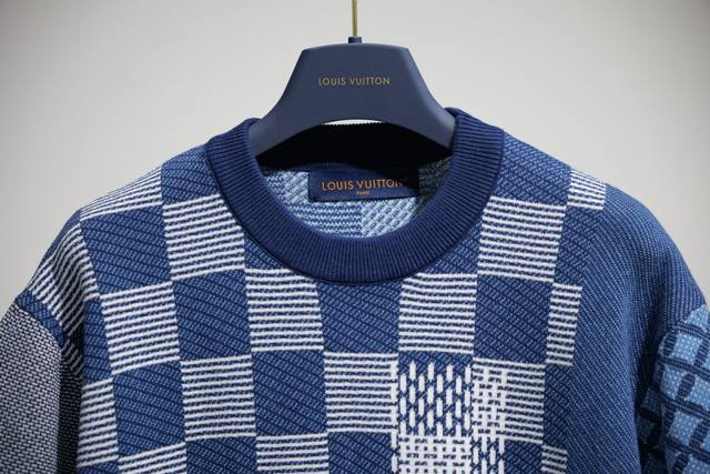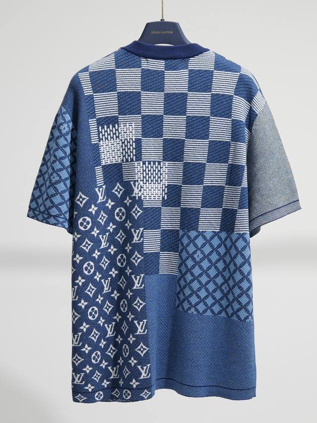 Differentiated from standard Ddd New Arrival Ddd This 3-color jacquard short-sleeved knit crew neck sweater, from the Fall/Winter 2025 collection, enhances the brand's iconic elements with exquisite intarsia patchwork. Inspired by the collection's tribute to Louis Vuitton's classic archives, the Damier and Monogram patterns are interpreted in soft indigo hues, creating a distinctive graphic effect. This ready-to-wear piece pairs perfectly with matching shorts. Ddd Regular fit Ddd Ribbed neckline Ddd All-over intarsia pattern Ddd: Indigo Ddd: Size X4 Ddd Ddd
