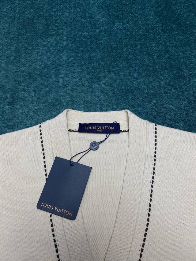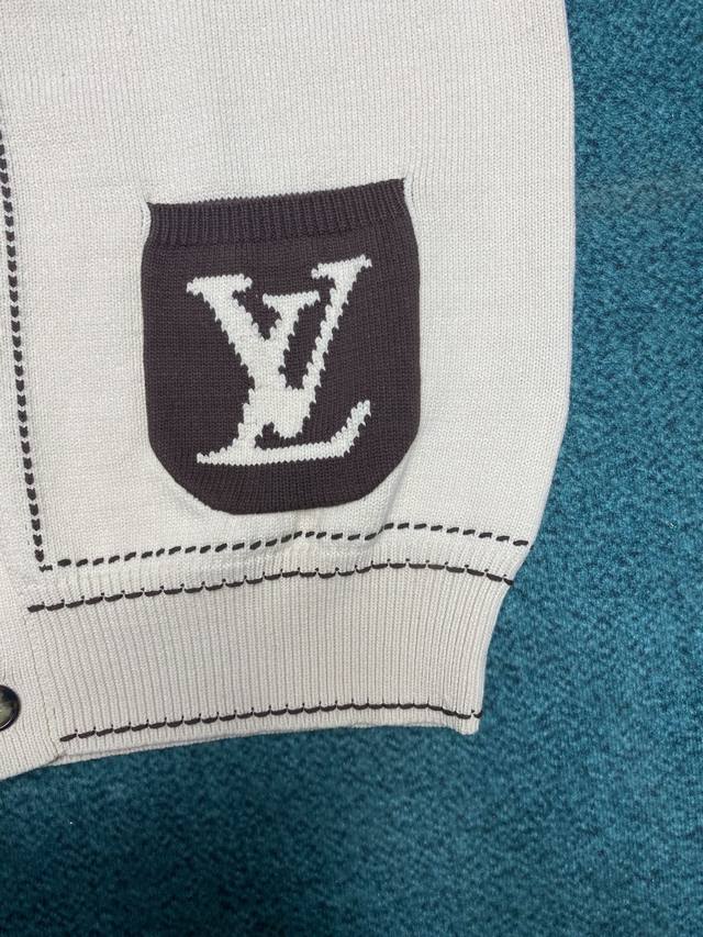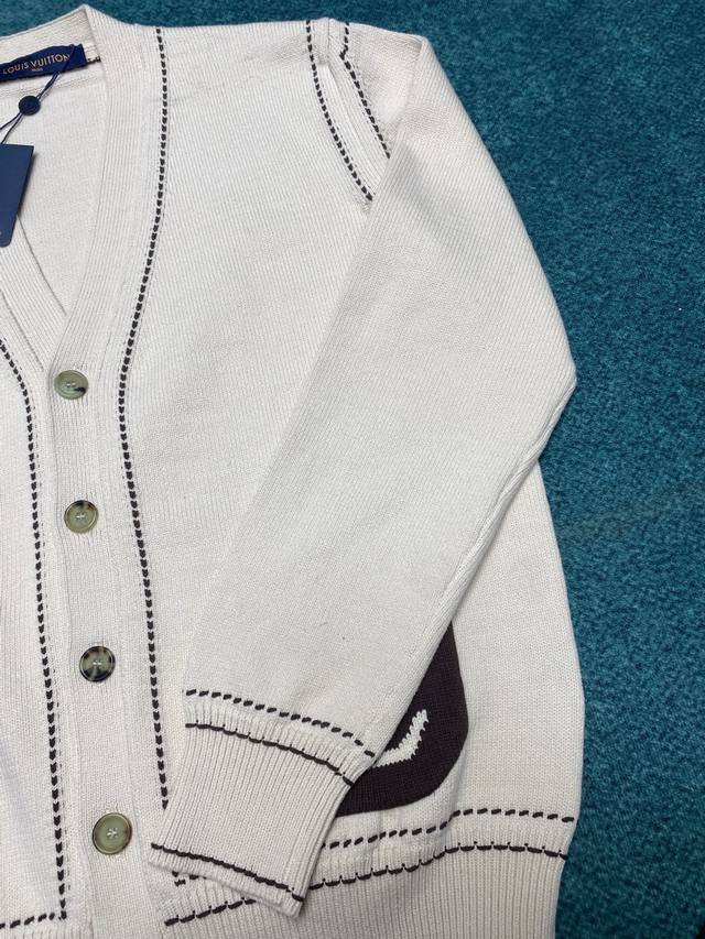Donkey's 24Ss new cotton-blend cardigan showcases preppy style in elegant hues. Front patch pockets feature Lv intarsia, and contrast stitching on the shoulders, collar, and hem. Pairs beautifully with matching pants or shorts. Available in unisex sizes: S, M, L, X, L,