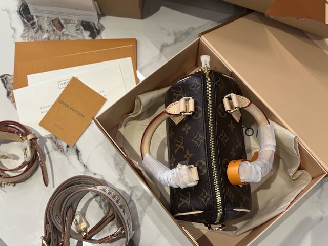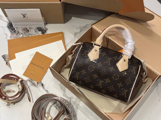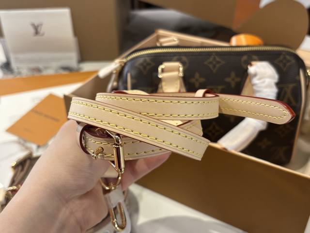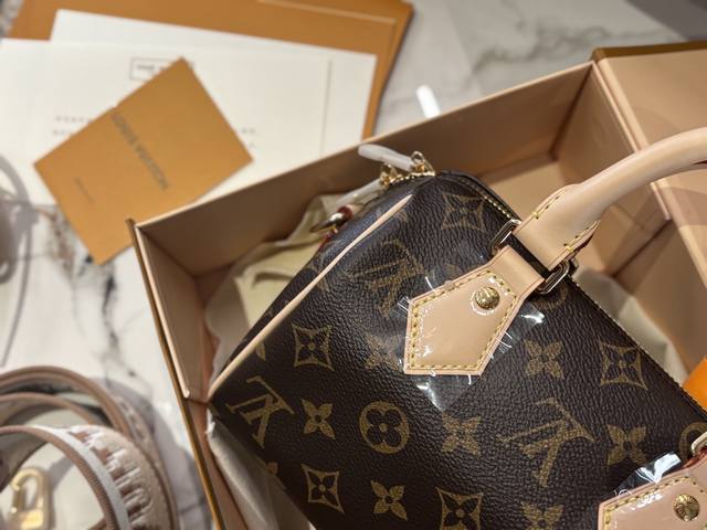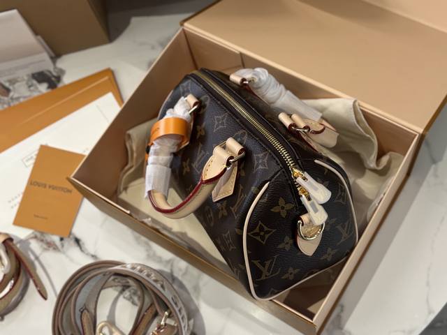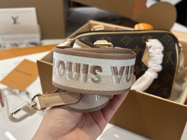 Speedy20 is the replacement of the previous vegetable-tanned leather shoulder strap with a wider canvas shoulder strap with embroidered logo, and it is adjustable. The shoulder strap style is very modern, giving people a very youthful and lively feeling. Paired with this bag, the overall style is very casual. The