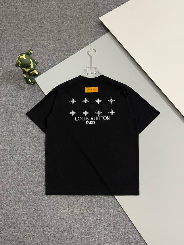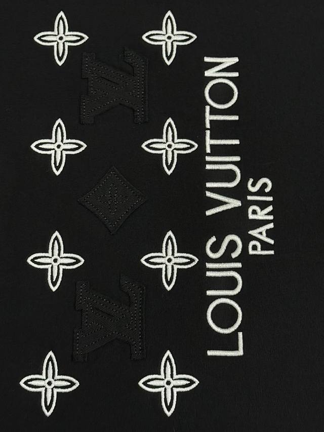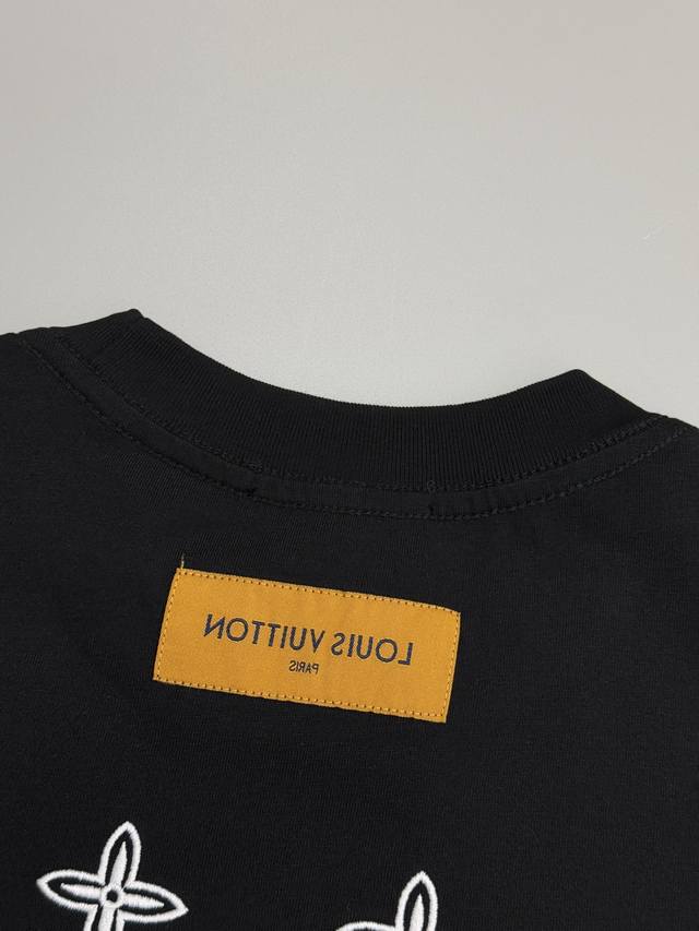 High Version Louis Vuitton 25SS Spring/Summer New Arrival - Latest Washed Short-Sleeve Crew Neck T-Shirt. Features openwork embroidery on the chest and ten-panel embroidery on the back. High-end custom embroidery design, avant-garde and fashionable! Brand logo, high-quality custom design, 32-count 280g fabric. Won't shrink, soft to the touch, comfortable to wear. Exquisite stitching. Fine workmanship. Incredibly stylish look! A must-have for fashionable men! Colors: Black, White. Sizes: S-XL.