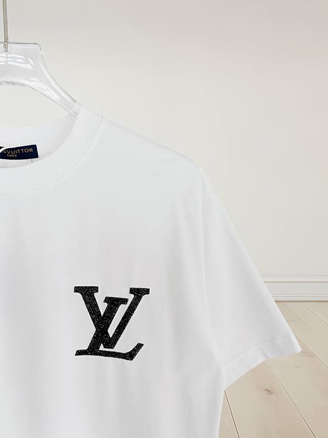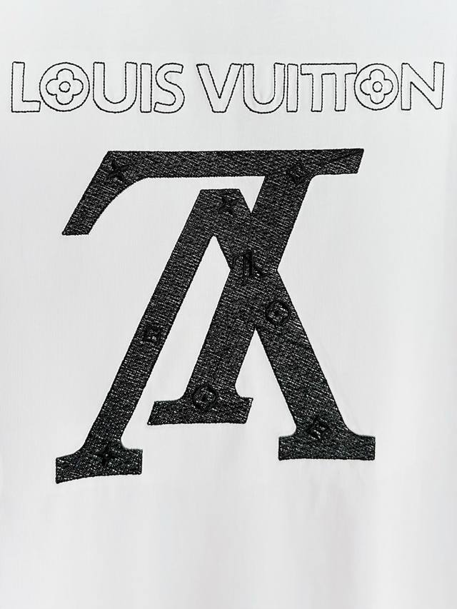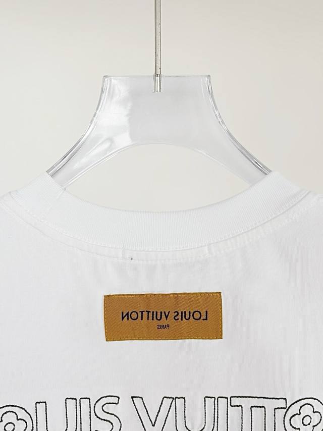 High Version Louis Vuitton New Runway Style Flat Embroidery + Inner Floral Heavy Craftsmanship Lv Logo Embroidery Back Panel Flat Embroidery with Large Lv Logo Embroidery Short-Sleeve T-Shirt, Unisex! Short-sleeve t-shirts shouldn't be generic; they must be unique and eye-catching. This Lv short-sleeve t-shirt boasts excellent quality, comfort, and the classic cut. The fabric and tailoring are meticulously crafted. Made of 280g washed pure cotton, it's breathable and comfortable for everyday wear. The ribbed knit at the neckline is neat and tight, preventing it from shifting even with movement. The loose fit looks amazing on, with a minimalist and clean design, making it incredibly versatile for everyday wear! Effortlessly create a youthful look with any outfit. This one piece will make you go crazy for fashion; it's a foolproof stylish item! Colors: Black, White. Sizes: S-XL