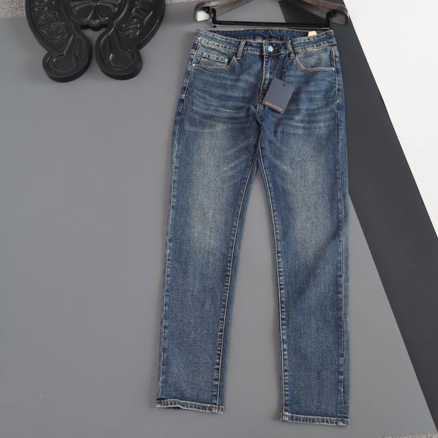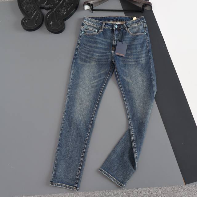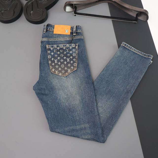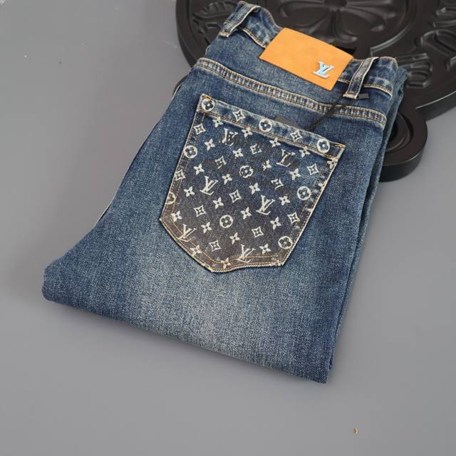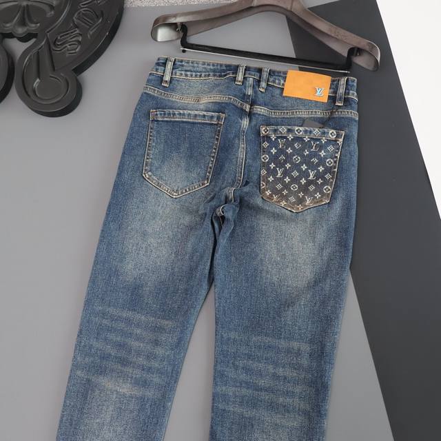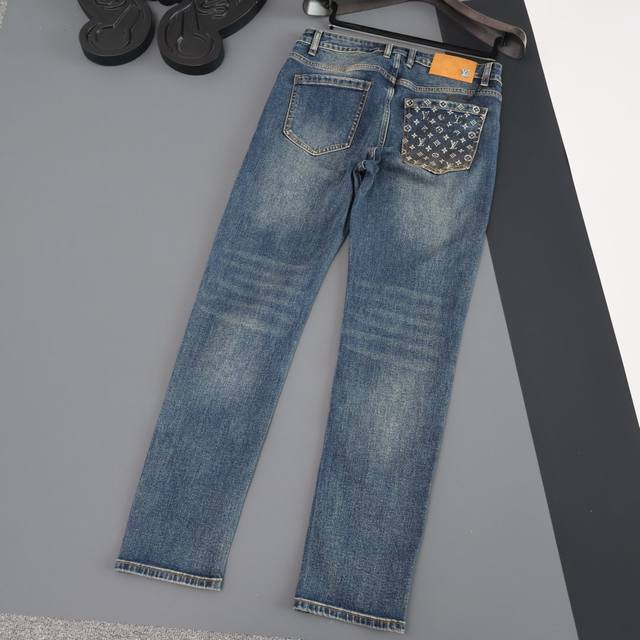 High-end luxury new arrival, limited supply and uncontrolled pricing! 2025 latest LV brand men's dark textured washed casual jeans. Made with customer-supplied stretch fabric, original factory-customized hardware, sourced from Hong Kong trading companies. High-end Japanese OEM production, heavyweight platinum-level quality, same order as G-counter, 7K+! The designer has changed the usual style, with high-density embroidery on the back waistband pockets for a more individual and trendy look! Innovative and extremely comfortable! Made with original Japanese imported raw denim fabric, slightly stretchy, super soft, and super comfortable! Plus, top-notch washing process, perfect from the start! Even color, clearly visible texture, extremely complex washing process, the fit is not easily deformed and fits perfectly! The hangtag, leather tag, and buttons all feature LV's exclusive logo design! I absolutely love the cut of these jeans! They're perfect