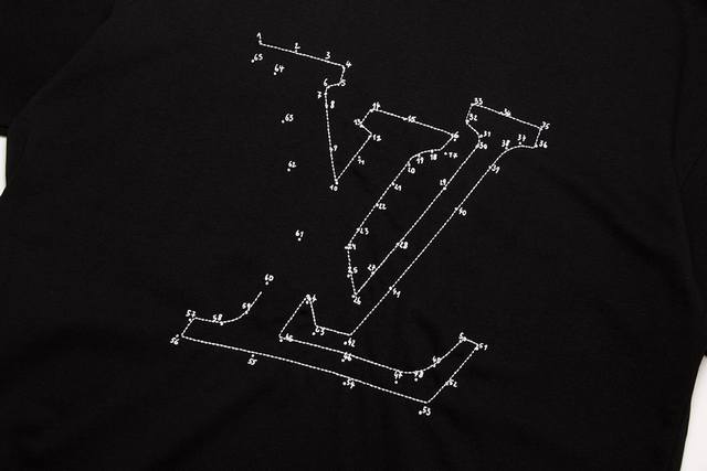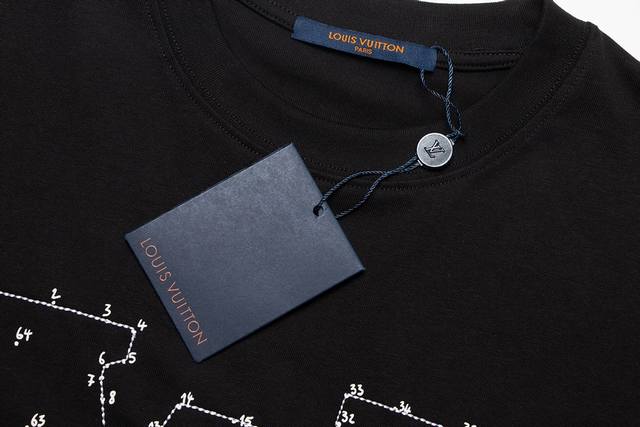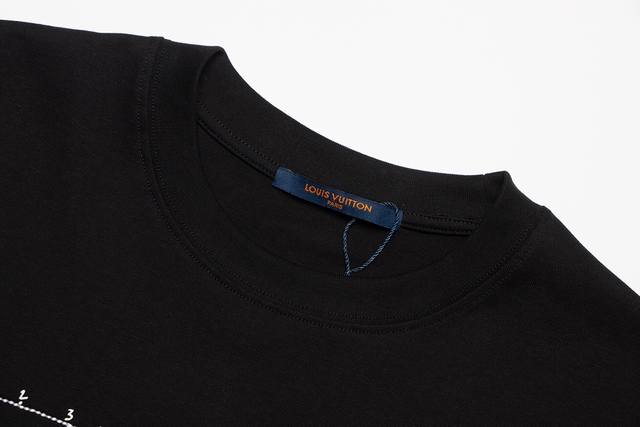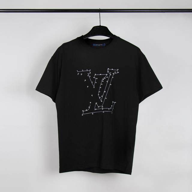 High-end quality, exclusive customization, Lv three-dimensional embroidered letter logo round neck T-shirt, using custom-dyed high-weight original fabric, washed up to 280G pure cotton double yarn fabric, thread increased to 2.7 without deformation, loose oversize version, unisex style, different from the market currency version