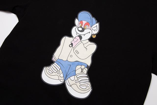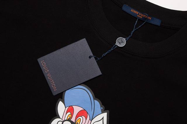 High-quality, exclusive custom design, crew-neck short-sleeved shirt with Lv cartoon print and lettering logo. Made with custom-woven, custom-dyed, high-weight, original fabric. Washed to 280g pure cotton, with 2.7 threads for a long-lasting, shape-resistant finish. 1-to-1 craftsmanship, loose, oversized fit, unisex, differentiated from the market's popular version. Size: XS S M L