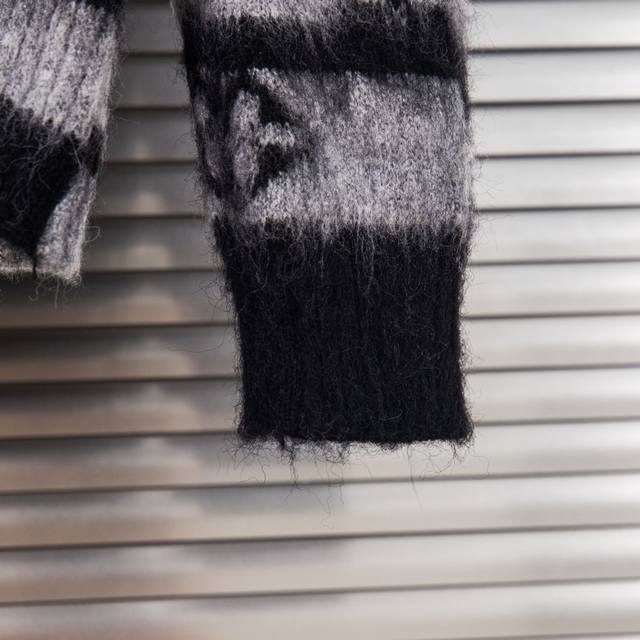 High-quality, high-volume item. Louis Vuitton 23Fw gradient mohair cardigan, grey and white. Originally purchased for 14,900. Custom-knitted with 67% mohair, 28% nylon, and 5% sheep's wool yarn. Imported Stoll yarn ensures perfect alignment and stitch accuracy. The black, white, and grey tones highlight the full Monogram pattern. The mohair undergoes a natural shrinking treatment after washing. After knitting, the loose threads are manually removed, knotted, and sewn together. After sewing, it is washed, ironed, and shaped. Then, the clips are removed, and the fibers are gathered. After further washing, it is gathered again, and finally gathered once more to achieve the same feel and effect as the original. The process is very complex. Features front patch pockets and has been worn by numerous celebrities and influencers. Style number: 1831# Color: As pictured Size: SML