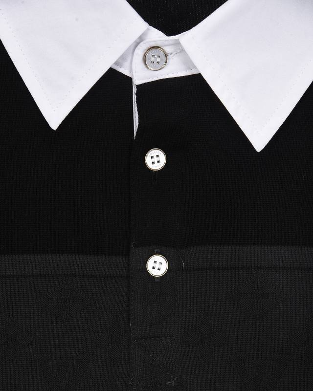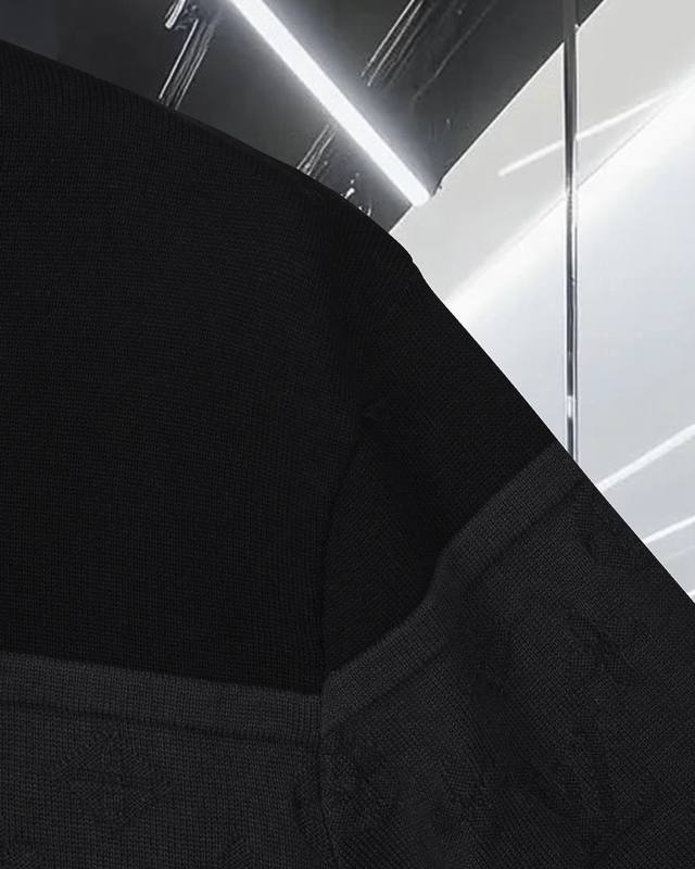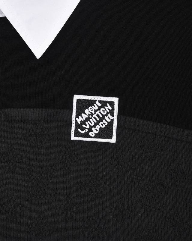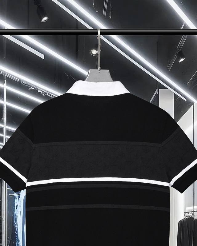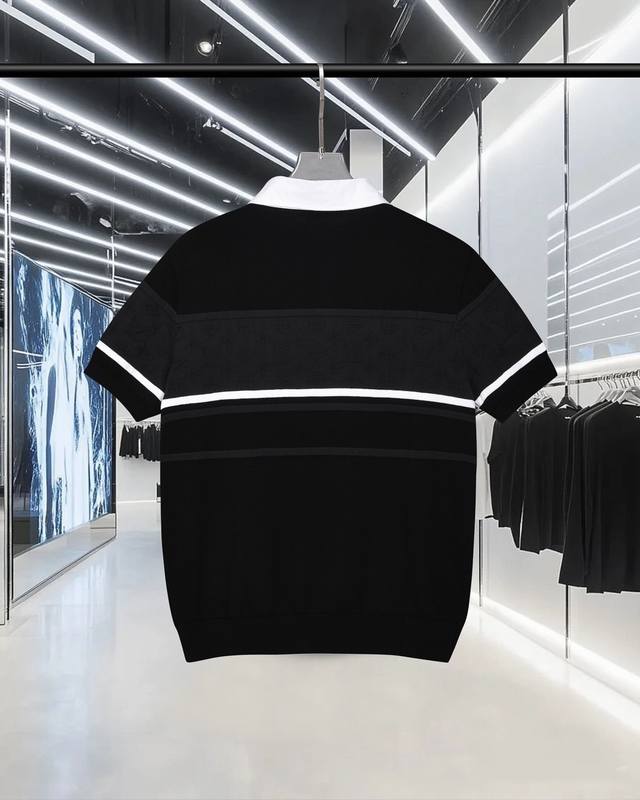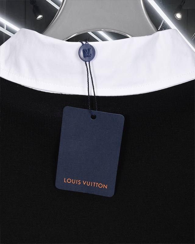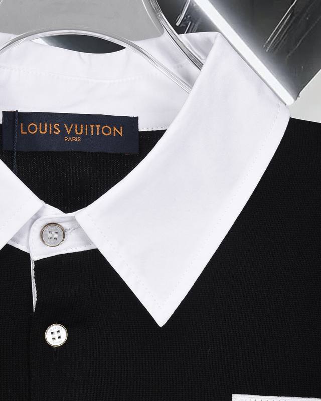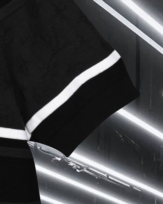 High-quality original development Louis Vuitton embroidered badge jacquard color-block knit collared short-sleeved shirt. Exclusive customization, original fabric, same style as the official knitted long-sleeved collared polo shirt. Customized with a very comfortable feel. 2025 SS latest, synchronized with brick stores, fashionable and unique, super versatile. Suitable for both men and women, a must-have. Complete with hangtag, neck label, washing label, and three tags. Color: Black. Sizes: S-XL.