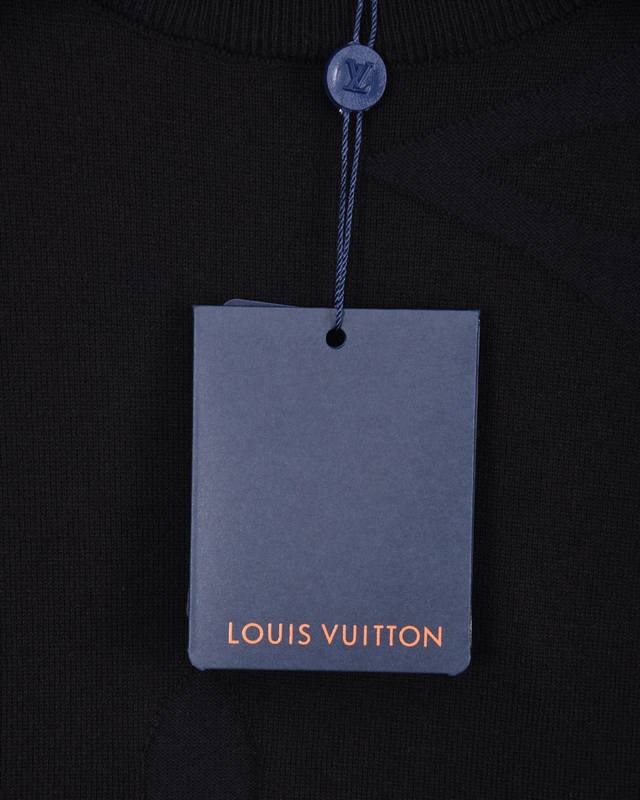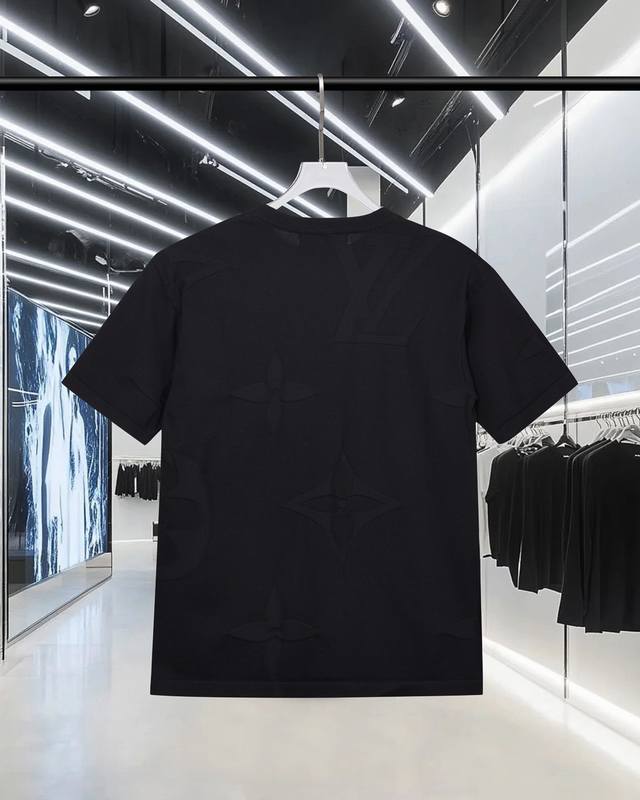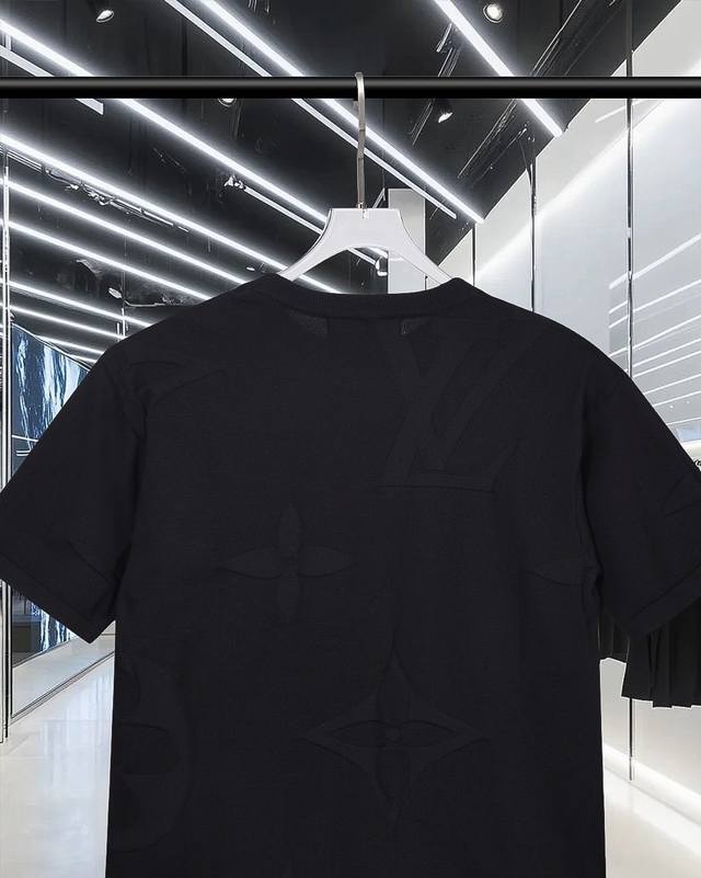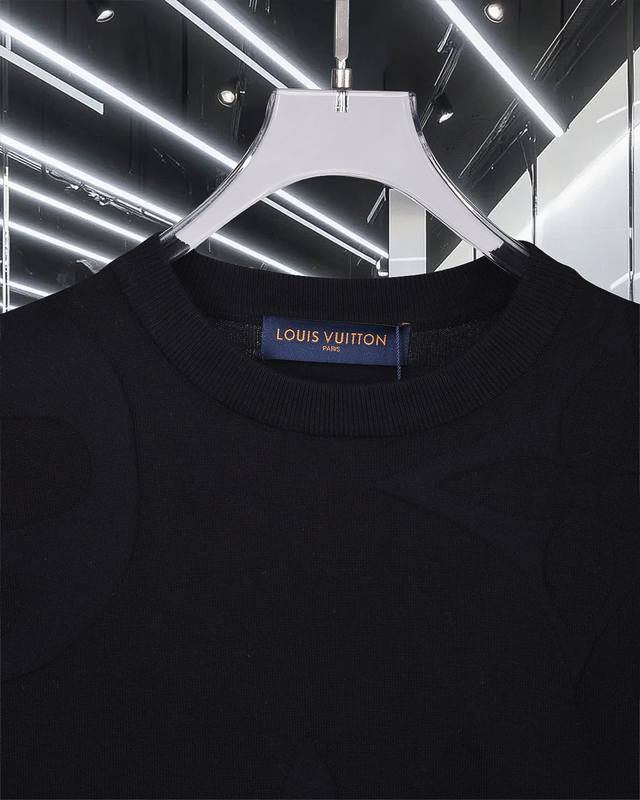 High-quality original development Louis Vuitton monogram logo knit T-shirt with embossed pattern. Exclusive customization, original fabric, same style as the official crew neck short-sleeved shirt. Customized with a very comfortable feel. 2025 Spring/Summer latest, same style as brick stores, fashionable and unique, super versatile. Suitable for both men and women, a must-have. Complete with hangtag, neck label, washing label, and three tags. Color: Black. Sizes: S-XL.