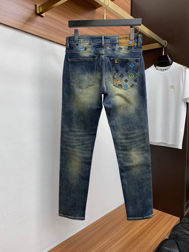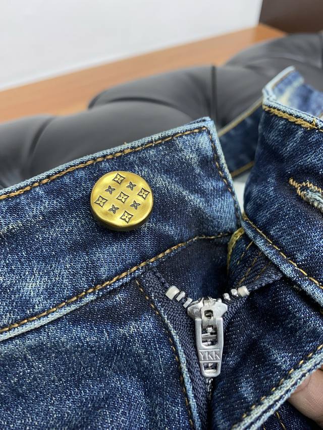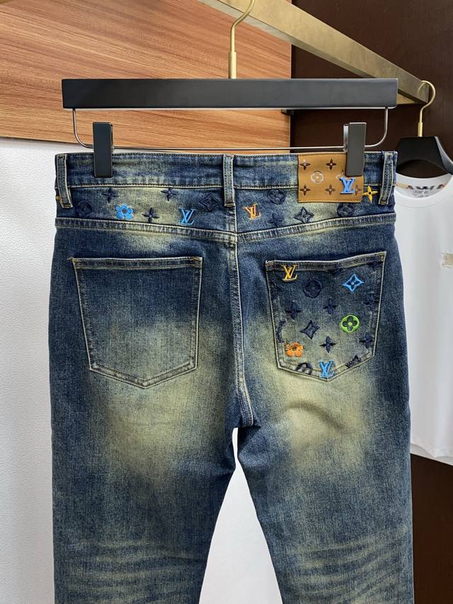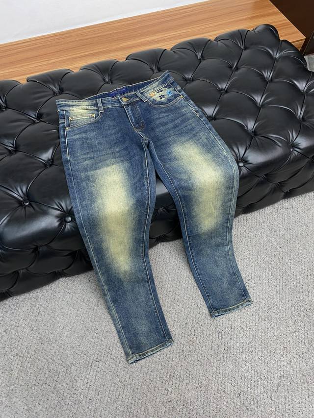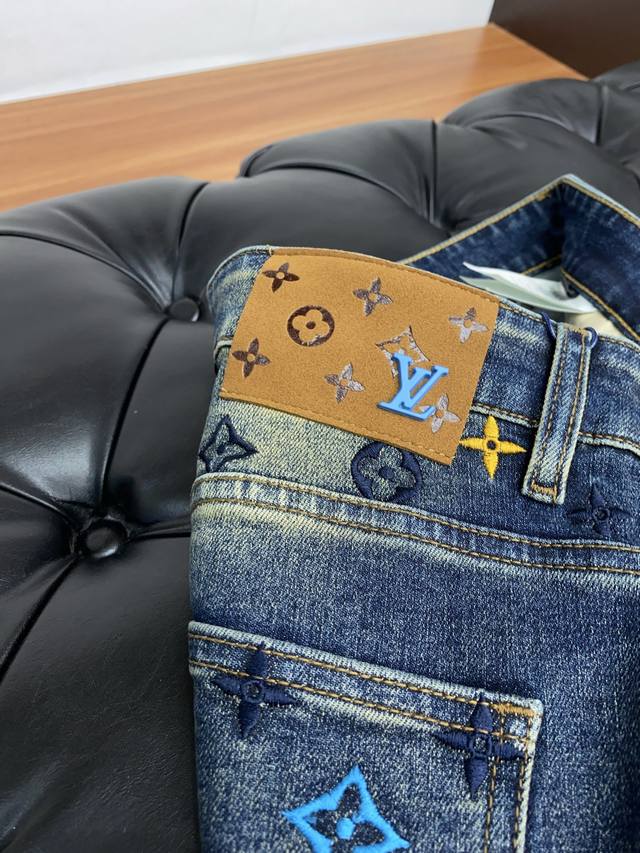 In stock today! Louis Vuitton 2025 Autumn/Winter New Men's Jeans, original factory fabric and original wash! Imported original washed stretch fabric, complex handcrafted processes; even a few extra seconds in any washing stage will result in a completely different color effect, making it all the more precious, exceptionally durable and odor-resistant. Made with superior denim stretch texture, genuine leather patch, and high-end metal accessories to create a unique and original jeans style! Original hardware accessories, perfect fit, comfortable and breathable, extremely high-end, boutique quality, looks incredibly handsome. Sizes: 29-40, no 37.