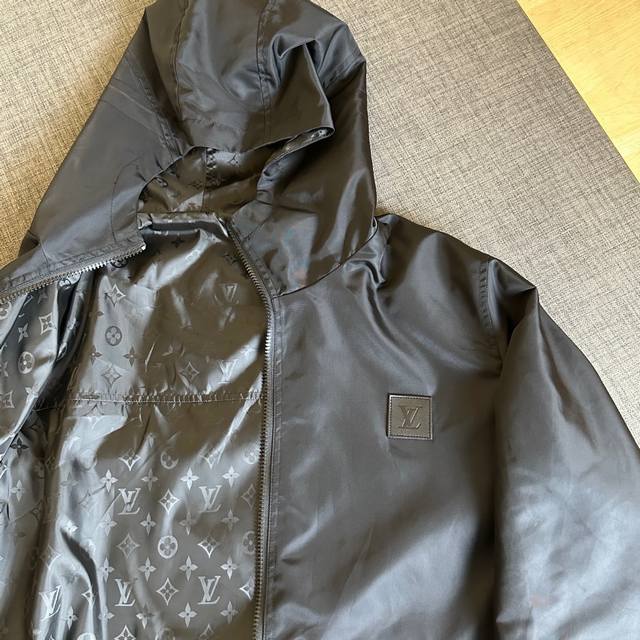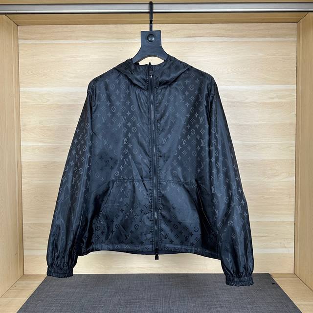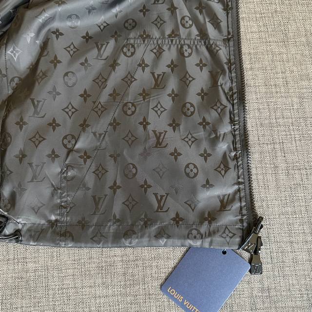 Lois Vitn 2025 Spring/Summer New Reversible Hooded Jacket, Monogram Jacquard Fabric, Aligned Cut, Leather Label Design on Chest, Engraved Hardware, Original Fabric, Unisex Style. Craftsmanship: Reversible. Sizes: M-3XL.