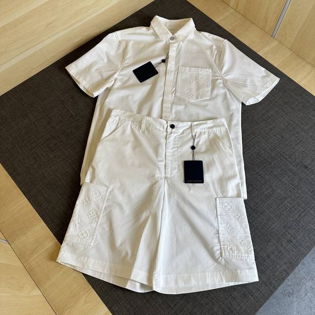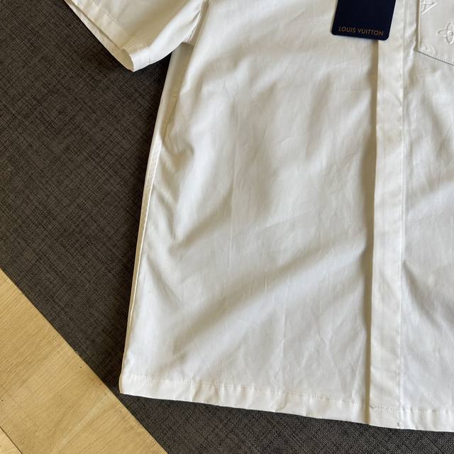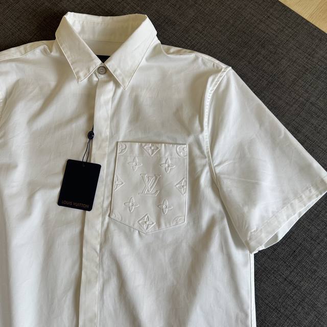Lois Vitn Louis 2025 spring and summer new style pocket embossed old flower short-sleeved shirt pocket design takes a long time hardware original mold opening details processing fabric upper body super stylish and comfortable unisex style