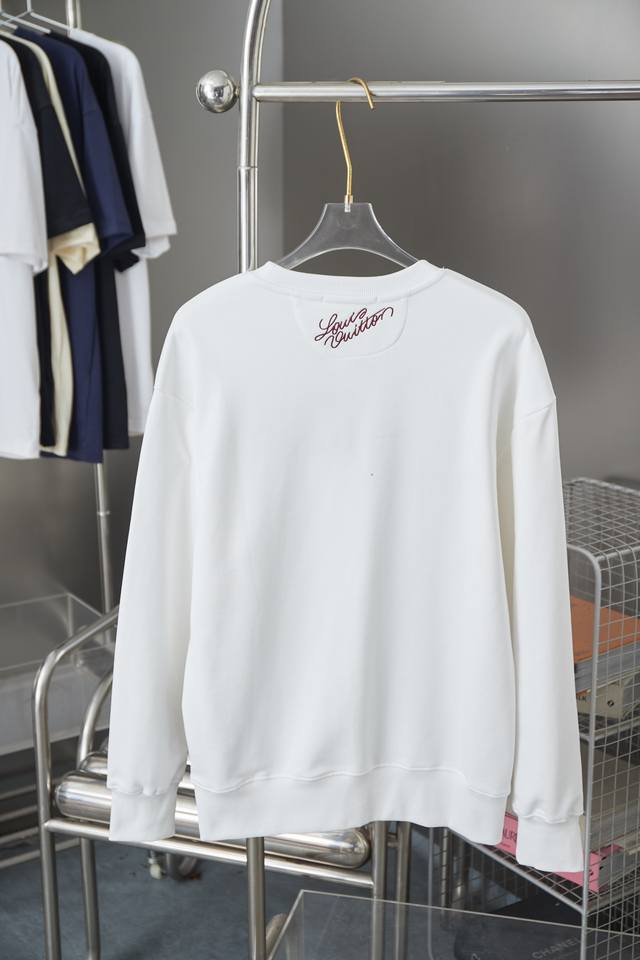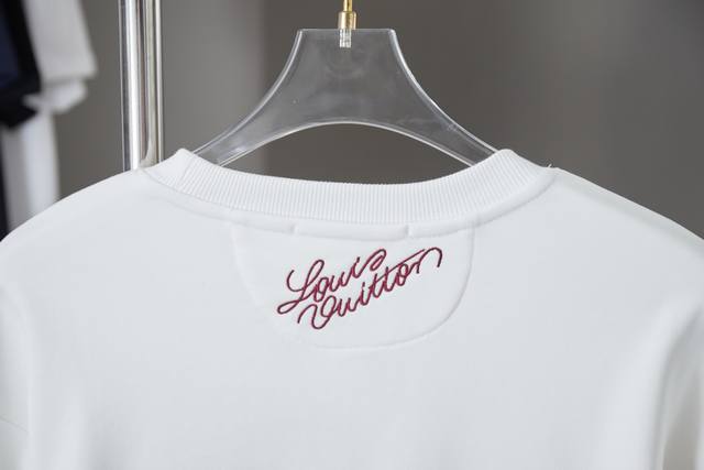 Louis 1V Embroidered Beaded Letter Pullover Crew Neck Sweatshirt Ddd A must-have item for men's and women's everyday commuting attire. Correct version, welcome to compare. Ddd Detailed features Ddd Made of 480g pure cotton double yarn fish scale terry fabric Ddd Dust-free singeing process on the face, lint-absorbing and environmentally friendly reactive dyeing on the bottom Ddd Imported Tajima machine embroidery with handmade beaded letters Ddd Double needle stitching with cross seam Ddd Original label, wash tag, moisture-proof paper packaging Ddd Colors: White, Blue Ddd Sizes: S, M, L, XL DDD