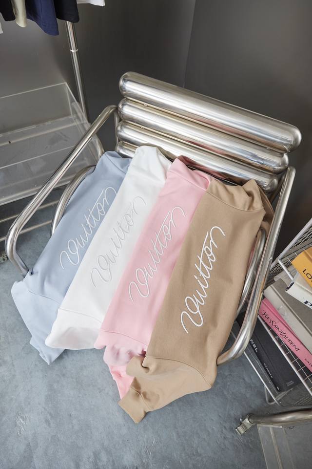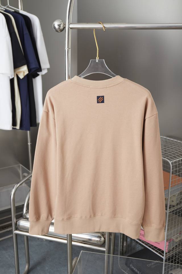 Louis 1V Embroidered Letter Crew Neck Sweatshirt Ddd A must-have item for men's and women's everyday commuting attire. Correct version, welcome to compare. Ddd Detailed features Ddd Made of 480g pure cotton double yarn fish scale terry fabric Ddd Dust-free singeing process on the face, lint-absorbing and environmentally friendly reactive dyeing on the bottom Ddd Imported Tajima machine embroidery, embroidered Lv lettering Ddd Double needle stitching with cross seam Ddd Original label, wash tag, moisture-proof paper packaging Ddd Colors: White, Pink, Khaki, Blue Ddd Sizes: S, M, L, XL DDD