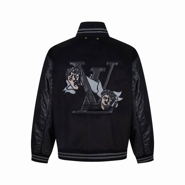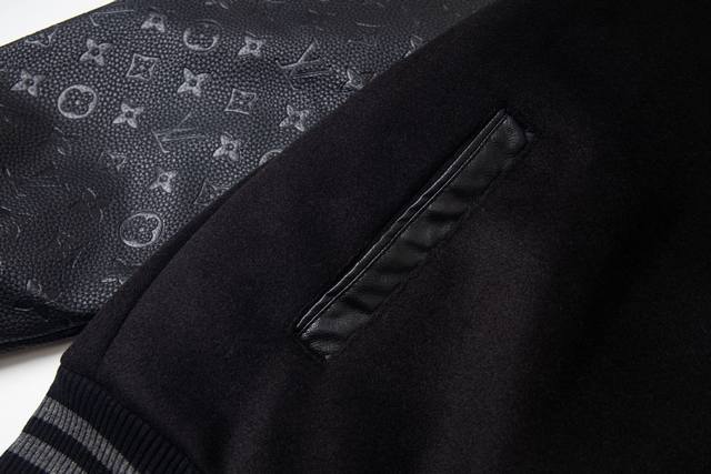 Louis V22Ss Summer New Dark Miniature Baseball Jacket Louis Vuitton Custom Fabric Lv New Embossed Jacket Baseball Jacket Vibe Style Unisex Exclusive Style Pure Black Series Ddd Sizes 46 48 50 52 DDD