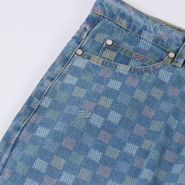 Louis Vuitton 1V 25Fw colorful checkerboard full-print denim jacketA must-have i