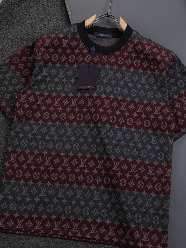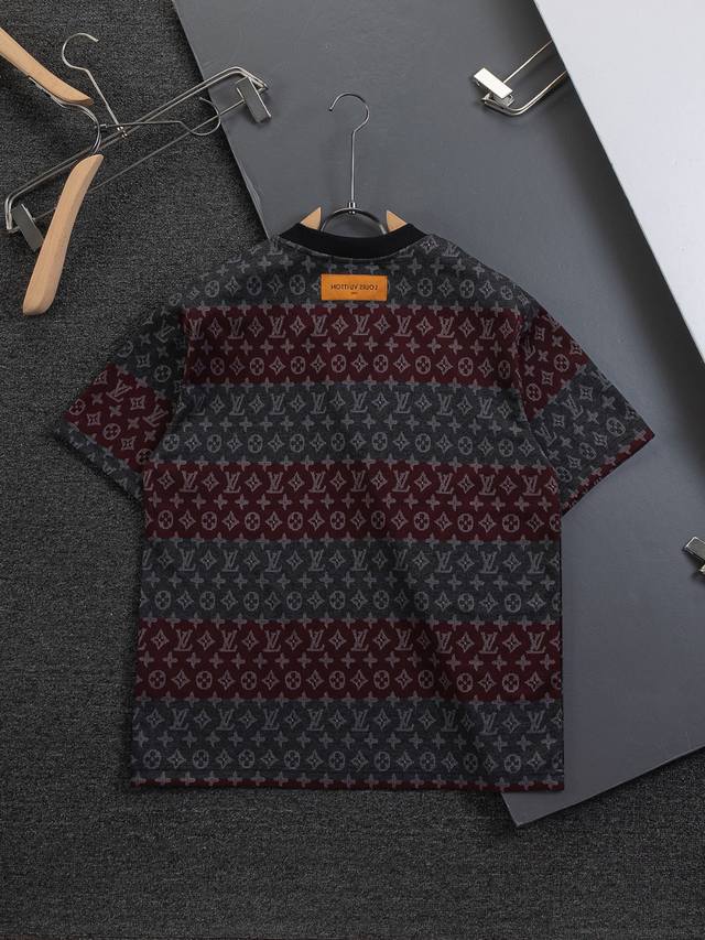 Louis Vuitton 1V (LV) Louis Vuitton LV (Lv) LV Slightly Wide Fit S-XL Ddd LV 26Ss New Arrival, Available Now in Boutiques! Multi-layered, color-blocked jacquard, large striped embroidered crew neck short-sleeved T-shirt with embroidered details. Unisex! A complete style statement. Synchronized with the official website, made of pure cotton from boutiques! Comfortable against the skin, stylish and easy to wear. Classic and simple logo design. Meticulous original factory craftsmanship. A must-have for stylish men. Short-sleeved shirts shouldn't be generic; they should be unique and eye-catching. This LV short-sleeved shirt boasts excellent quality, comfort, the classic fit, and fashionable design. The fabric and tailoring are all meticulously crafted! Made of 320g washed pure cotton fabric, this garment is breathable and comfortable for everyday wear. The ribbed knit at the neckline is neat and tight, ensuring it stays in place even with frequent movement. The relaxed fit is flattering and stylish. The overall design is minimalist and versatile, perfect for everyday wear! Pair it with any pants for a youthful look, or simply add a T-shirt to your outfit