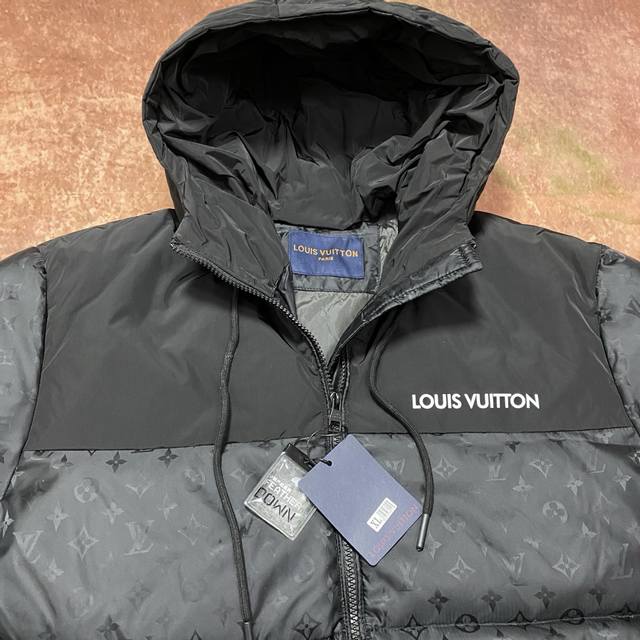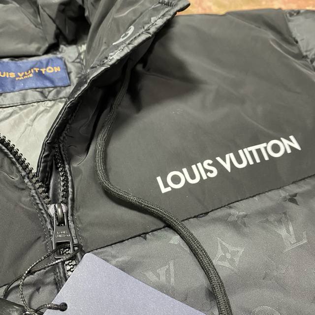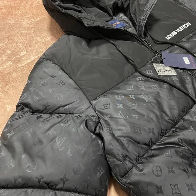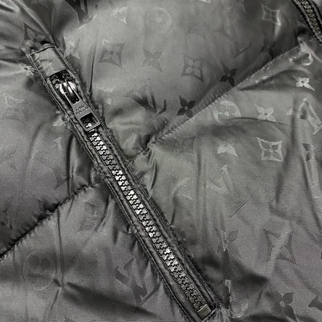 Louis Vuitton 1V Original All-over Embroidered Logo Down Jacket, Waterproof, Thickened, Hooded, Warm, Fashionable and Trendy. Made with 80% white duck down, 400g fill power, full of loft. Custom zipper, accessories, and labels included. One jacket is all you need for the whole winter!! This year's hottest item, worn by many online celebrities, unisex and couple style, fashionable and versatile, a must-buy for winter! Overall fit, fits up to 200 lbs! Color: Black. Sizes: M-3XL.