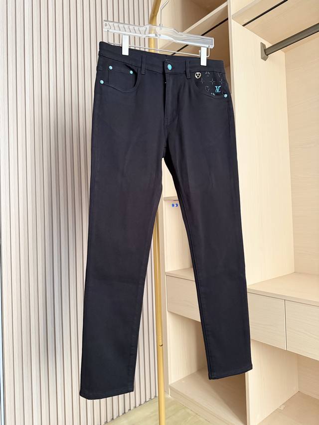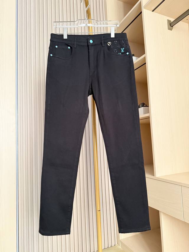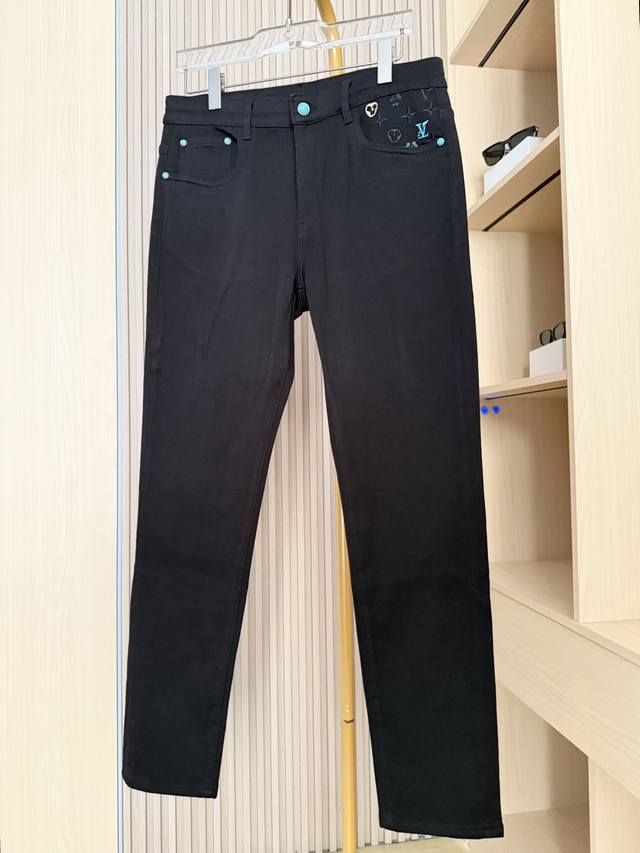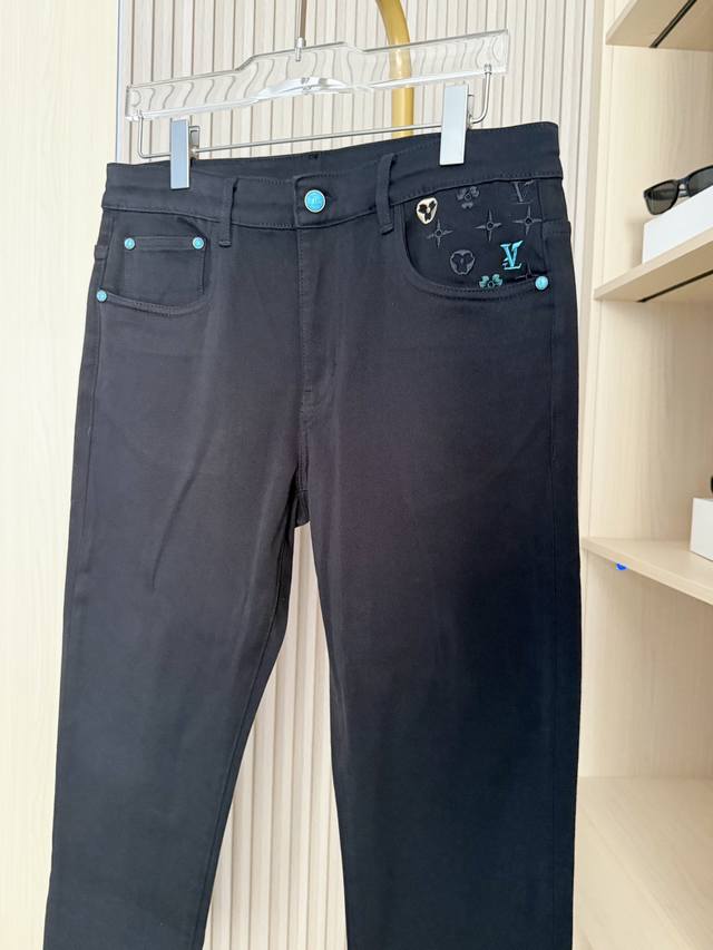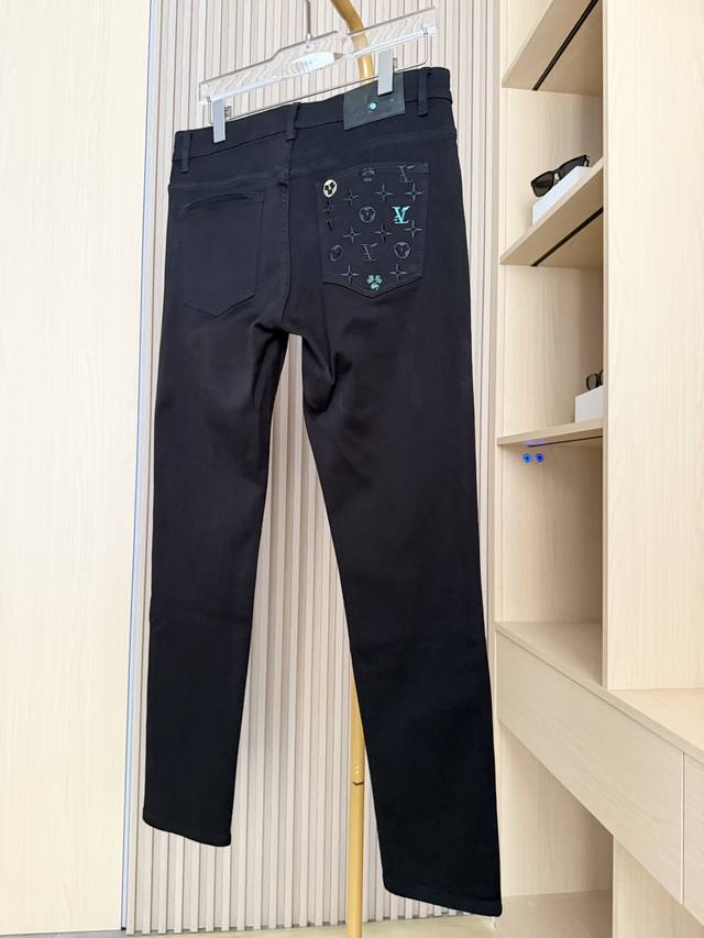 Louis Vuitton - 2025 New Jeans! Made with premium black denim, the fabric is fine and elastic, offering excellent durability and drape for a comfortable, unrestricted fit. The classic black color is sophisticated and easy to match, resisting deformation and showcasing quality and style. The back pockets incorporate the brand's iconic elements with exquisite embroidery and metal embellishments, highlighting luxurious details and thoughtful design, breaking the monotony of black denim and making them highly recognizable. The slim fit precisely conforms to the body, effectively flattering leg lines and showcasing a sleek and stylish look. Sizes: 29-38. Comes with Lane Crawford Hong Kong gift box.