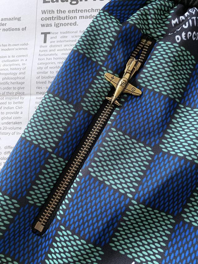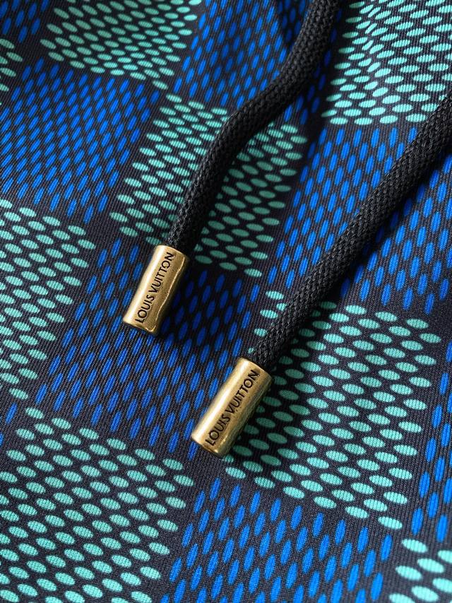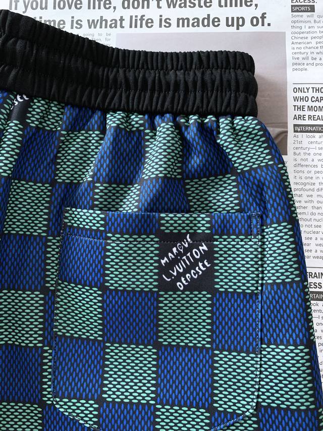 Louis Vuitton 2025 Spring/Summer New Arrival - Checkered Shorts. The iconic blue-green checkered pattern is neat and visually striking, with each square showcasing the brand's unique aesthetic, exuding understated luxury. Attention to detail is evident throughout, with the side zipper being a highlight. The zipper pull is shaped like an airplane, engraved with the delicate brand logo, serving not only practically but also decoratively, adding a touch of dynamism and fun to the overall look. The metal end of the drawstring is also engraved with the brand name, combining exquisite craftsmanship with brand recognition. Size: M-3XL