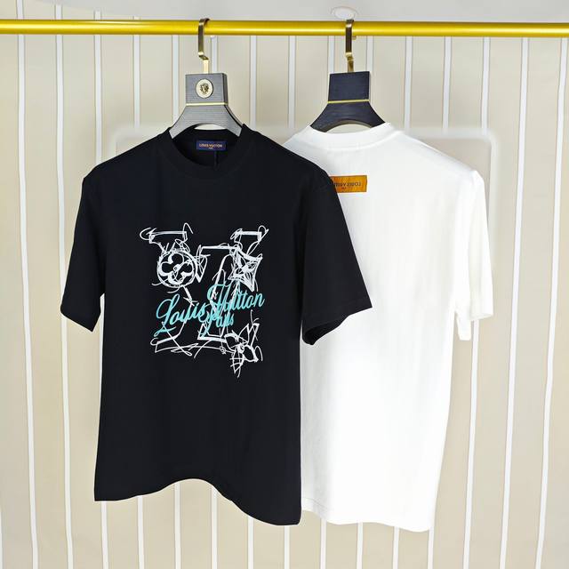 Louis Vuitton 2025 Spring/Summer New Arrival Original Men's Crew Neck Short Sleeve T-Shirt, Sold in Department Stores, High-End Quality, High-Version Os Fit, Wide Fit, Popular Style, Customized Logo Print and Letter Design on Chest, Imported Double-Strand 100% Pure Cotton Fabric, Soft and Delicate to the Touch, Skin-Friendly and Comfortable to Wear, Factory Direct, Exquisite Workmanship, Very Handsome and Stylish, A Must-Have Item for Men, All Tags Complete, Sizes: S-3XL (Runs Large, Largest Size Suitable for Approximately 220 lbs), Please Provide Height and Weight When Ordering, Black, White,