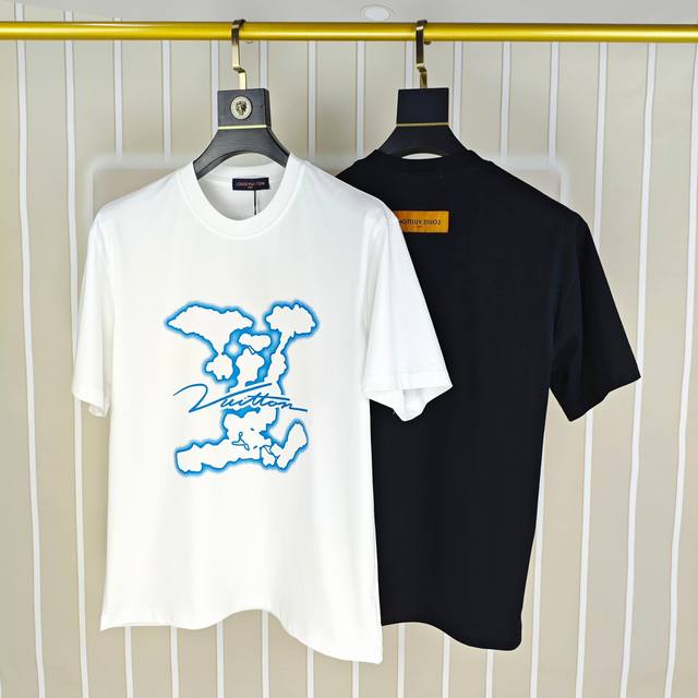 Louis Vuitton 2025 Spring/Summer New Arrival Original Men's Crew Neck Short Sleeve T-Shirt, Sold in Stores, High-End Quality, High-Version Os Fit, Wide Fit, Popular Style, Customized Logo Print and Letter Design on Chest, Imported Double-Strand 100% Pure Cotton Fabric, Soft and Delicate to the Touch, Skin-Friendly and Comfortable to Wear, Factory Direct, Exquisite Workmanship, Very Handsome and Stylish, A Must-Have Item for Men, All Tags Complete, Sizes: S-3XL (Runs Large, Largest Size Suitable for Approximately 220 lbs), Please Provide Height and Weight When Ordering, Black, White,