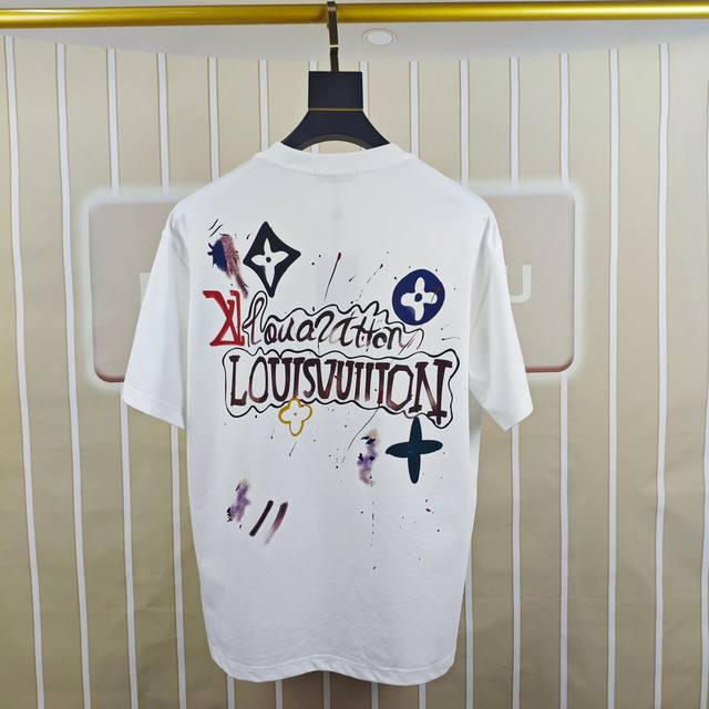 Louis Vuitton 2025 Spring/Summer New Arrival Original Men's Crew Neck Short Sleeve Quick-Drying T-Shirt, Sold in Department Stores, High-End Quality, High-Version Os Fit, Wide Fit, Popular Style, Logo Print on Chest, Front and Back, Custom Design, Imported Double-Strand 100% Pure Cotton Fabric, Soft and Delicate to the Touch, Skin-Friendly and Comfortable to Wear, Factory Direct, Exquisite Workmanship, Very Handsome and Stylish, Essential Item for Men, All Tags Complete, Sizes: S-3XL (Runs Large, Largest Size Suitable for Approximately 220 lbs), Please Provide Height and Weight When Ordering, Black, White,