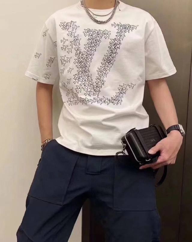 Louis Vuitton 2025 Ss Lv airplane print short-sleeved T-shirt. This is the market's top-tier quality. All original designs are carefully crafted to avoid stolen images. We guarantee no color difference from sellers. 260g custom-woven and dyed 36s double-yarn cotton fabric is soft, breathable, and comfortable, shrink-proof, shape-free, and pilling-resistant. Imported materials are used. Printed with Kangli machines. The letters are three-dimensional, clear, and durable, and they won't peel off. Correct printing details are used. The dyed threads retain their shape and color, and the heavy-duty craftsmanship is superior to other brands. Here's why my price is a bit higher than others. 1. While seemingly simple printing or embroidery is far more complex, it's 100% imported. Compare to competitors. 2. Each piece is our own, with the same detailed workmanship and fabrication as the original. Guaranteed color difference from the store. Replicas aren't a problem; it's embarrassing to find a fake. Replicas aren't shameful; the shame lies in not being able to buy the original. 3. Note that the threaded collars are all 360G original collars. The collar width and thickness are accurate to the millimeter. The collar is not easy to deform. The collars of high-end products are all restored to the difference between the counters. The large collars are ordinary garbage short sleeves with a print that shows the collarbone on the upper body, and they dare to call themselves high-end versions. Please be careful. Customers who have bought or seen the authentic products will come back to order from us again. This is quality. This is quality. 4. Customized accessories, collar labels, washing labels, hang tags, and packaging are truly restored to the counter, which is different from the fast-food products that are all common, washed wheat, and wheat. 5. Pay attention to the workmanship. The stitching at the collar is smooth and natural without overlapping lines, which is truly restored. This is something that many people can't do. 6. The fabric is 260G special 36-screw double yarn fabric. No one can do better than ours. There is really no comparison with the ordinary versions on the market. Please respect it. After all, it is authentic. Don't wear things worth thousands of yuan. The quality of street stalls is