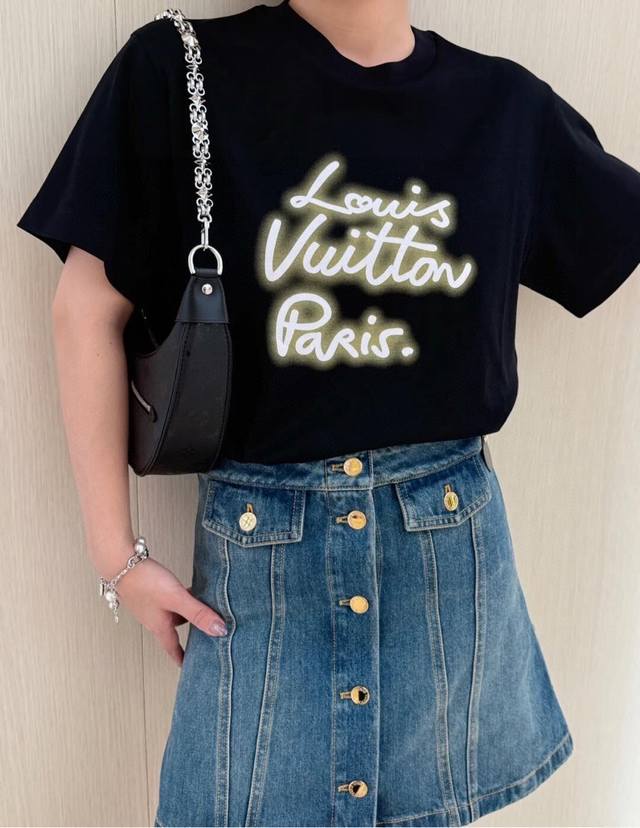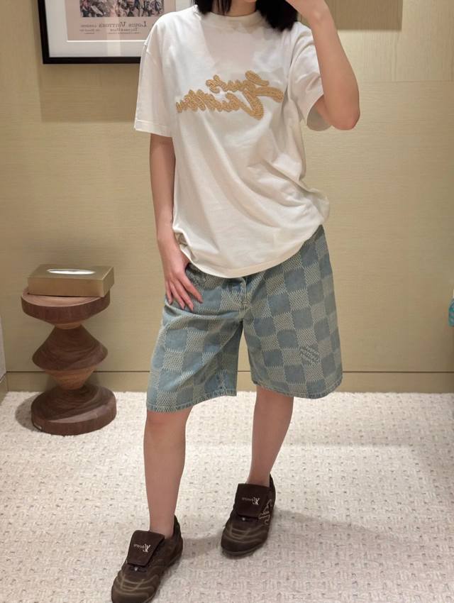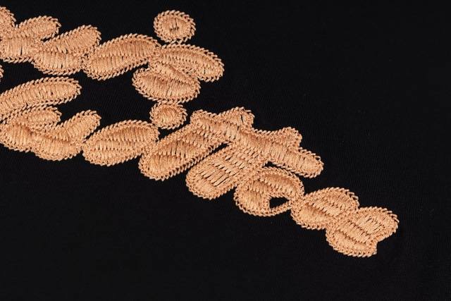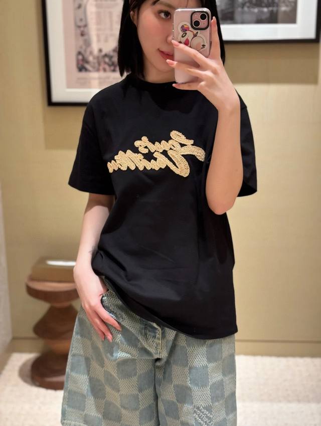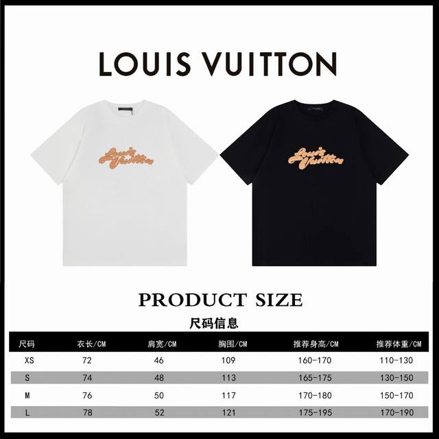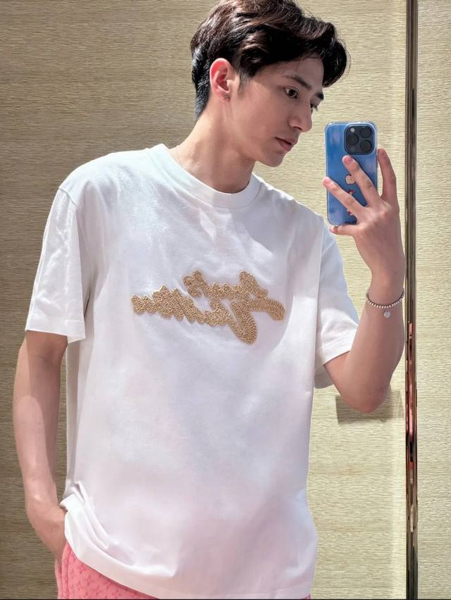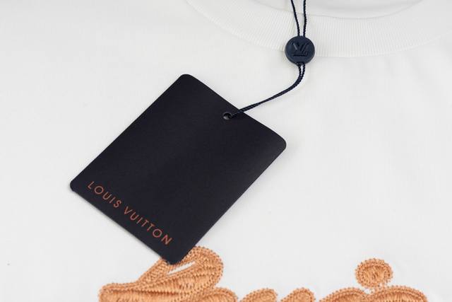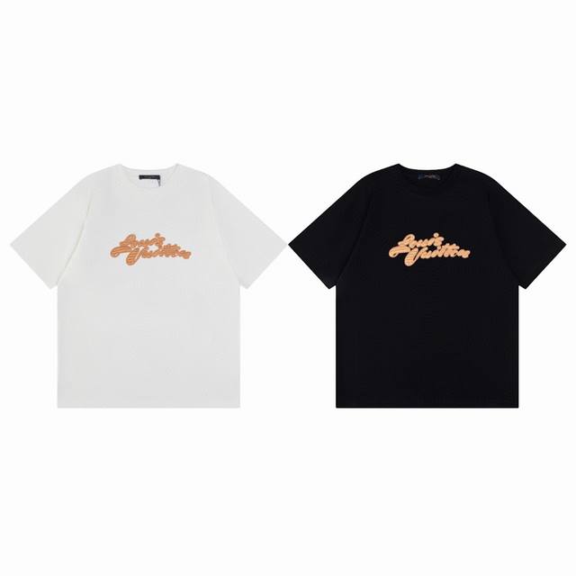 Louis Vuitton 2025 Ss Lv artistic monogram logo embroidered short-sleeved T-shirt. This is the market's top-tier quality. All original designs are carefully crafted to avoid stolen or mixed shipments. This is a 260g custom-woven and dyed 36s double-yarn pure cotton fabric that is soft, breathable, and comfortable, shrink-resistant, shape-resistant, and pilling-resistant. This is embroidered on an imported 25W Tajima embroidery machine. The chain stitch creates a chain-like texture, creating a chain-like pattern. The soft, elastic fine yarn creates a three-dimensional and richly textured embroidery.