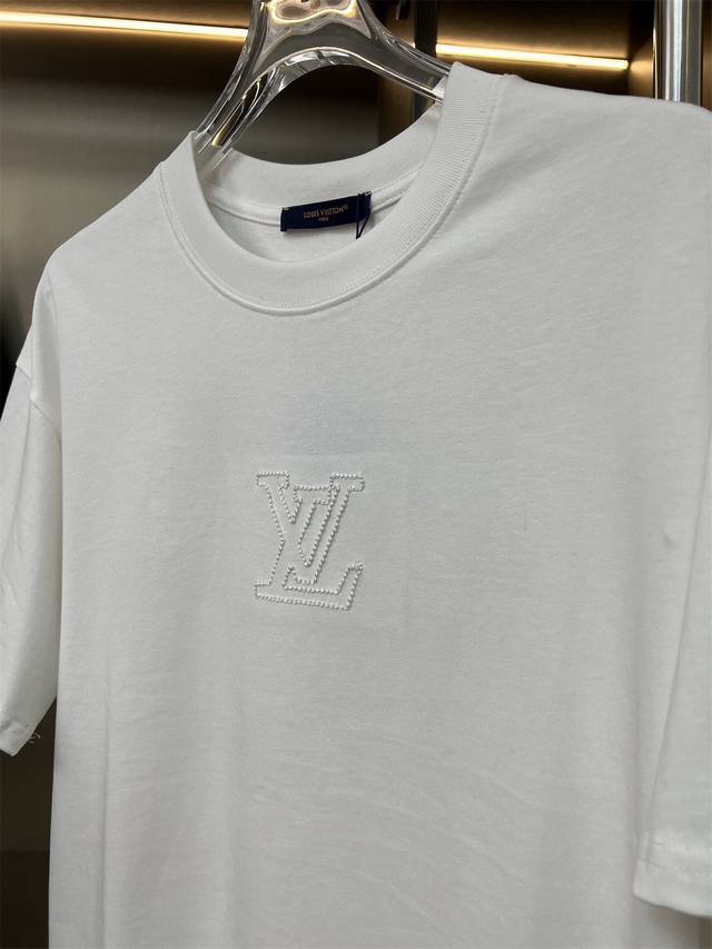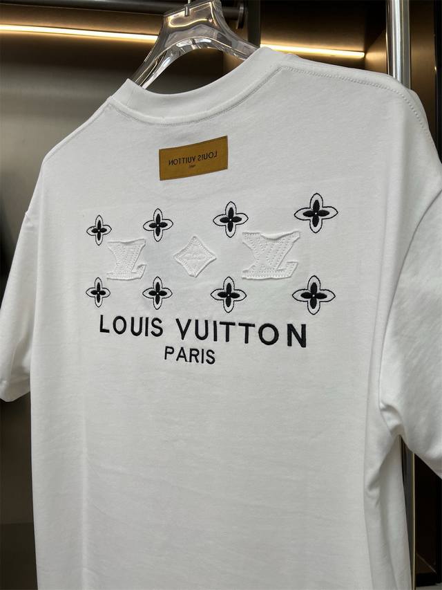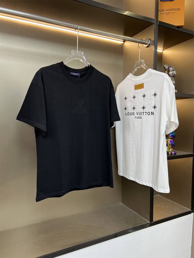 Louis Vuitton 2025Ss new monogram embroidered couple's casual short-sleeved T-shirt. Highest edition! Custom 290g double yarn fabric! Monogram embroidery craftsmanship! Accessories: Original mold, certified collar label, and silk care label. Authentic, original hangtag, matching lanyard, 3D hanging beads, and original packaging. Craftsmanship: True-to-original stitching! Supreme armhole alignment! Countless re-engravings guarantee 100% authenticity! The correct version, unisex, is super eye-catching, stylish, and stylish! Colors: White and Black. Sizes: S-XL (Figure 9).
