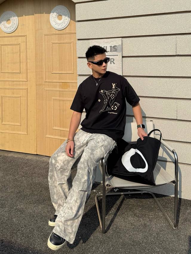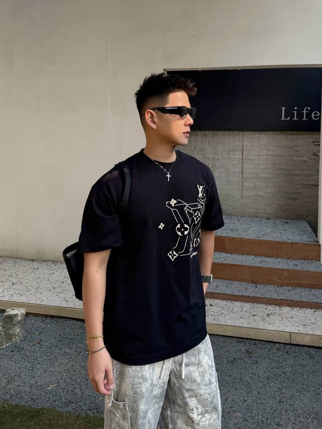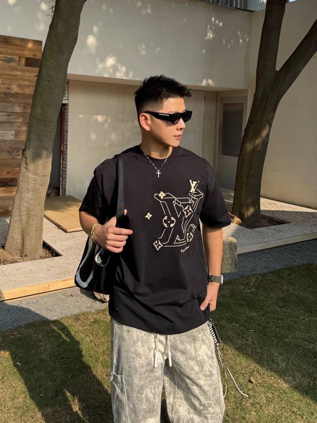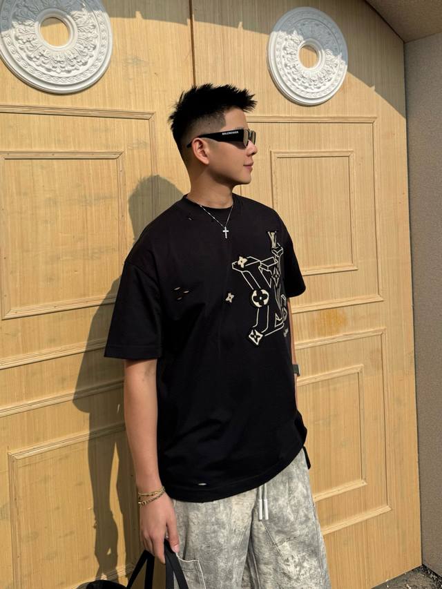 Louis Vuitton 2025Ss new patchwork hole embroidery couple casual short-sleeved T-shirt