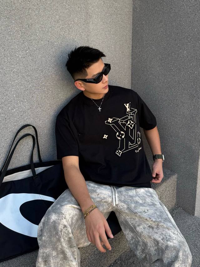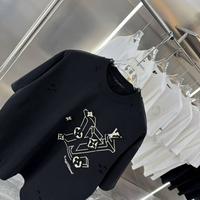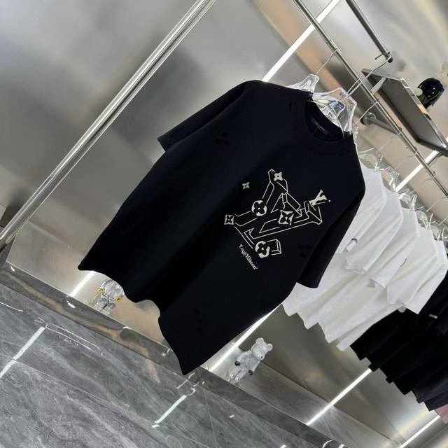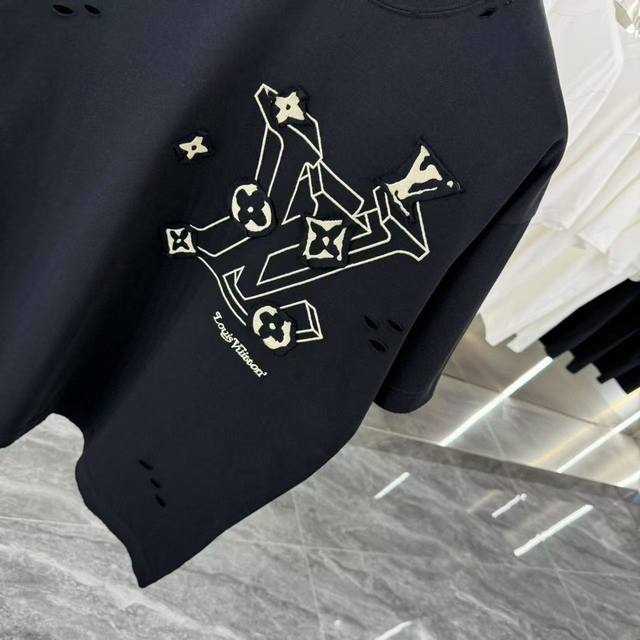 Louis Vuitton 2025Ss new patchwork hole embroidery couple casual short-sleeved T-shirt