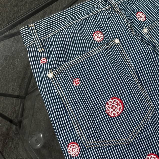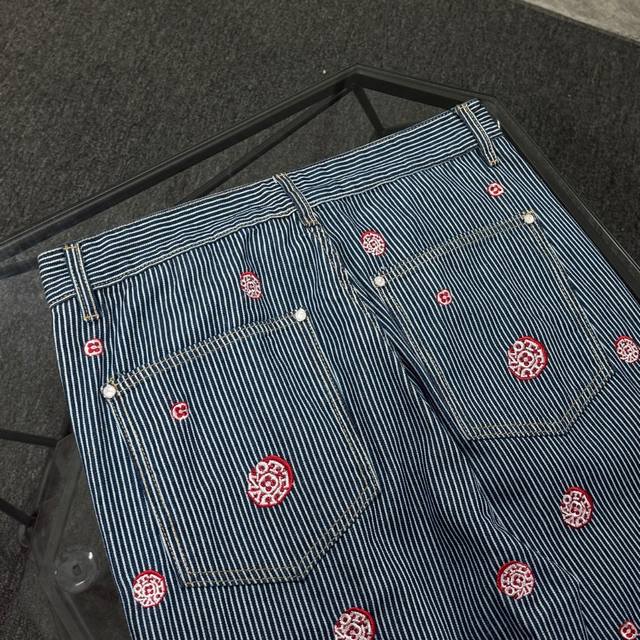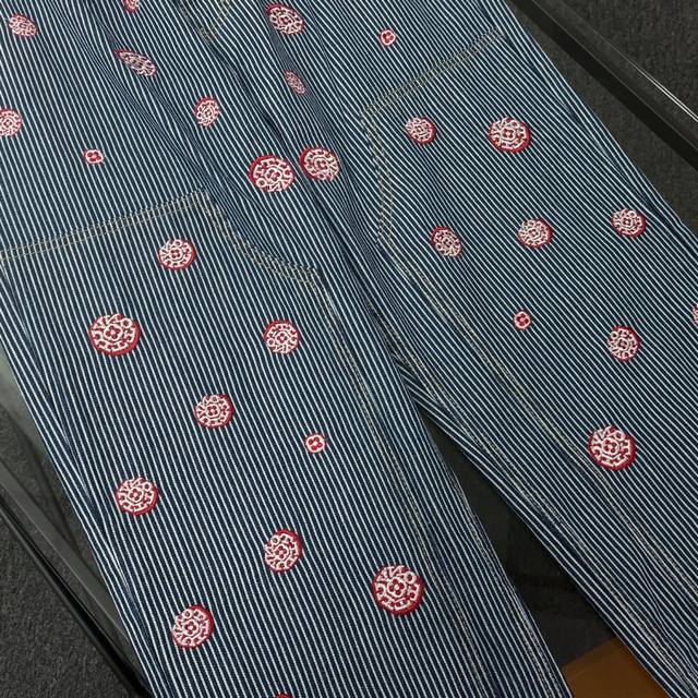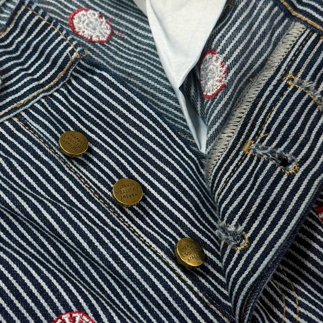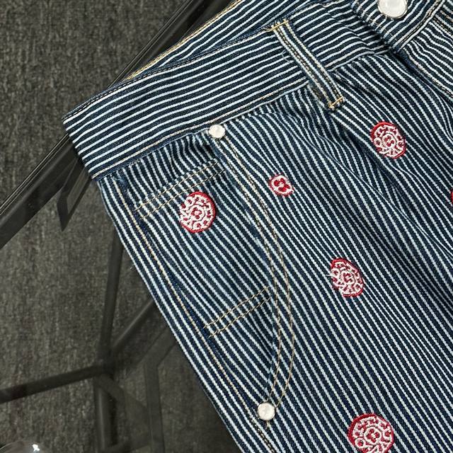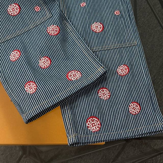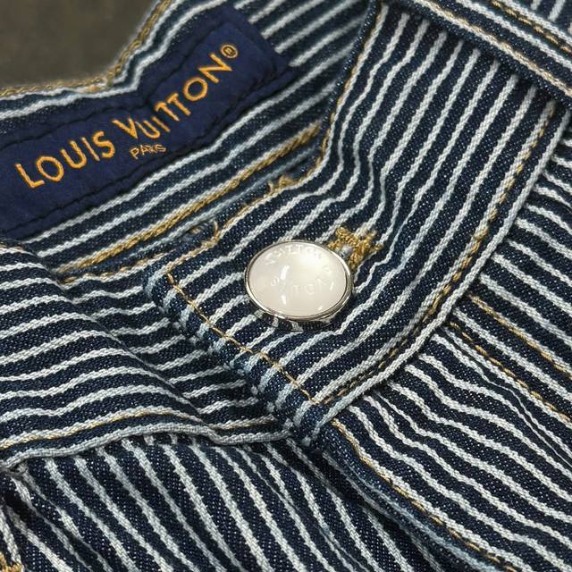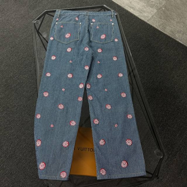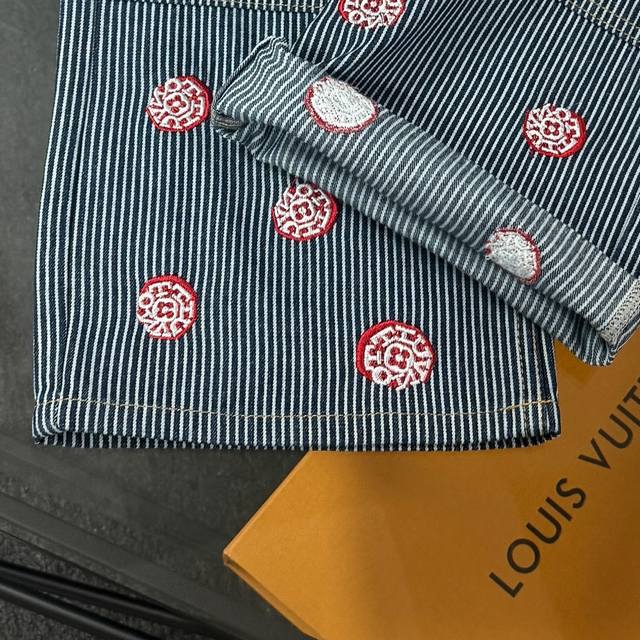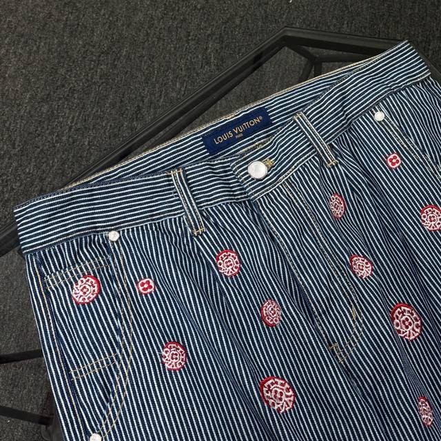 Louis Vuitton 2026 High-Quality Striped Workwear Embroidered Jeans, 430g Premium Custom Denim Fabric, Jackson Wang's Style, Unisex, No Deformation or Shrinkage, All Labels Included. Craftsmanship: Embroidery. Color: Blue. Size: S-XL.