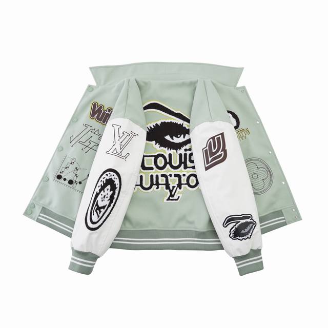Louis Vuitton 23Fw Evil Eye Baseball Jacket with Geometric Heavy Embroidery and Towel Embroidery (Bai Jingting's Runway Look). The fabric is a custom-woven blend of 65% wool, 15% natural silk, 10% spandex, and 10% fleece, weighing over 1000 grams! Most importantly, it boasts excellent colorfastness. Before wearing, soak it in salt water for 10 minutes, then rinse with clean water and dry