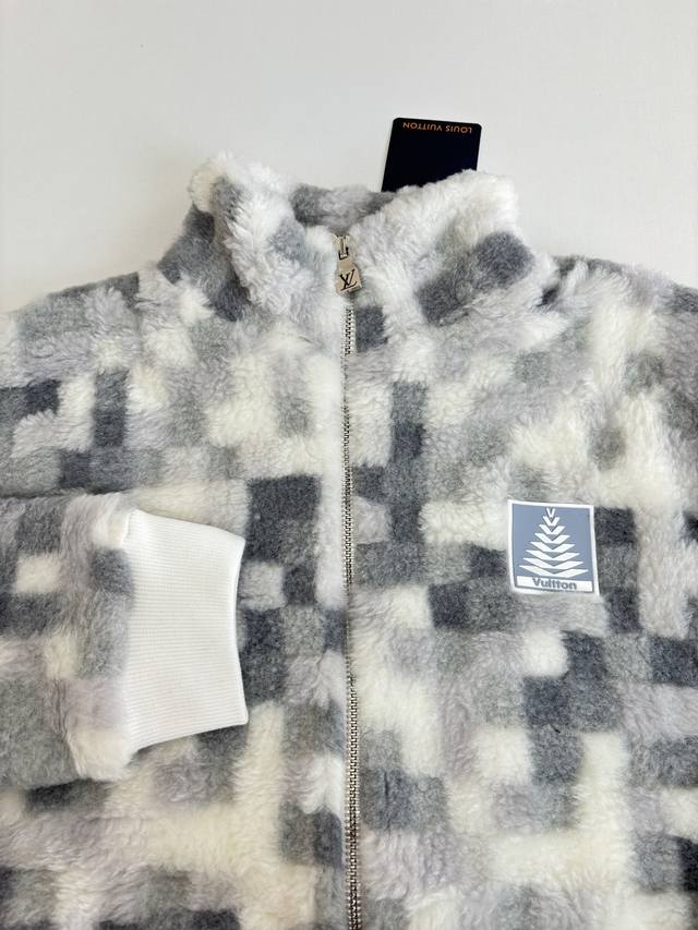 Louis Vuitton 24 New Ski Series Square Color-Blocked Long-Sleeved Fleece Jacket. Custom fabric, custom hardware, exclusive yarn-dyed jacquard fabric with distinct height and length of each square, making it the absolute pinnacle of the market. It surpasses any unreleased version on the market, nipping any inferior printed or substandard versions in the bud. The meticulously finished fleece texture presents a complex 3D effect, while the Louis Vuitton Fir Tree silicone patch on the chest adds a dynamic touch. Perfectly replicates the look of this jacket, pairing well with matching bottoms for a stylish ensemble, suitable for various occasions. Sizes: 46, 48, 50, 52.