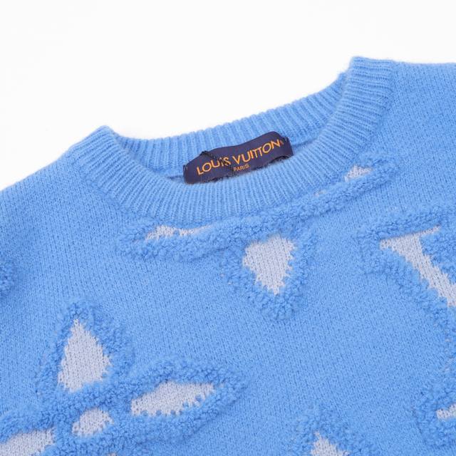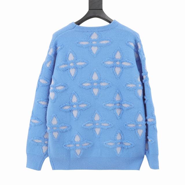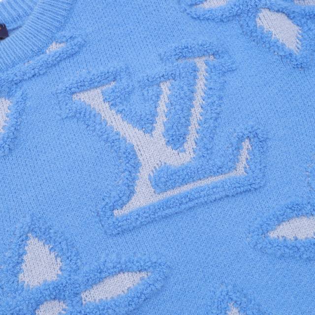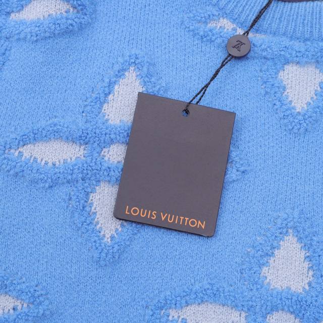 Louis Vuitton's new fall/winter embossed jacquard intarsia monogram sweater, the year's most premium, legendary piece. This crewneck sweater features the Damier Buffalo embossed pattern from the FW25 show, adding a Far West flair to the traditional Damier motif. The jacquard intarsia knit incorporates the LV logo, and the distinctive embossed texture adds a sophisticated finishing touch. Overall, this sweater looks fantastic.