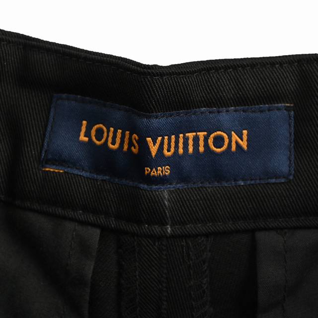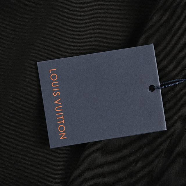 Original Purchase, woven twill fabric, front pockets embellished with Monogram flocking, rear Staples straps embellished with square studs, and a white cotton twill lining with a rubberized print of the brand logo. The pocket fabric is crafted the same way. The classic monogram pattern is handcrafted in size, spacing, and arrangement. Polyester fiber fleece is applied to specialized paper containing a heat-sublimation process, resulting in a flocked paper pattern.