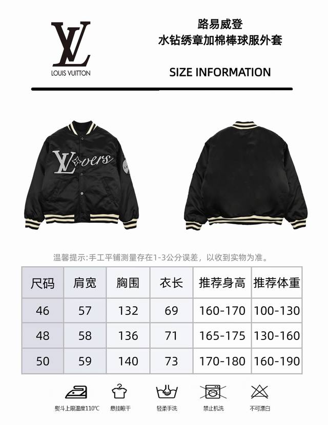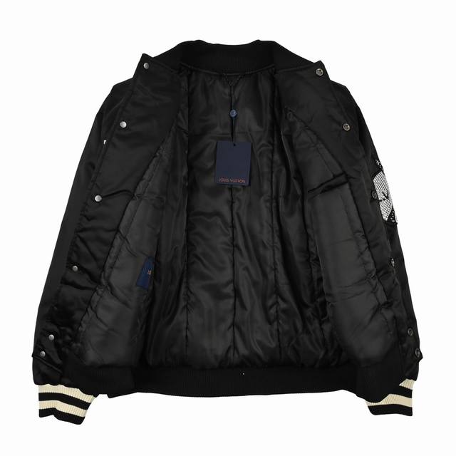 Louis Vuitton 24Fw Rhinestone Sleeve Padded Baseball Jacket (Ddd) This baseball jacket with a belted waist upgrades the classic American silhouette with iconic elements from the Spring/Summer fashion show. The lustrous technical fabric is adorned with a Lovers crystal embroidered applique on the chest, and the left sleeve features a V-shaped Eiffel Tower embroidered applique. The lightweight padded design brightens up various day and night looks. (Ddd) Size: 46, 48, 50 (Ddd)
