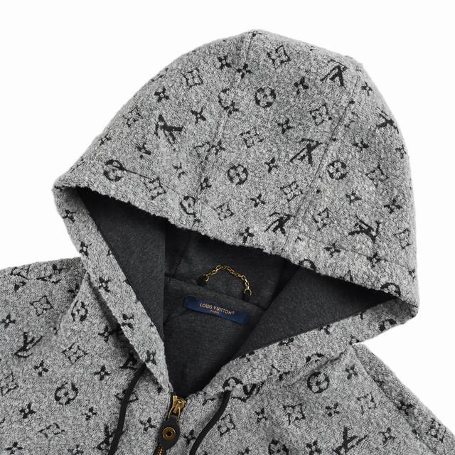 Louis Vuitton 25Fw All-over Monogram Jacquard Wool Hooded Jacket DDD LV Monogram hooded jacket, classic monogram pattern + high-quality wool blend, soft and warm. Gold zipper and drawstring details make it perfect for autumn and winter. The relaxed fit is distinctive, the lining is soft and comfortable, and it's unisex. It can be easily worn for casual or streetwear styles. DDD Size: S-XL DDD