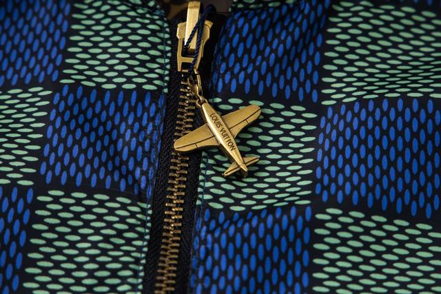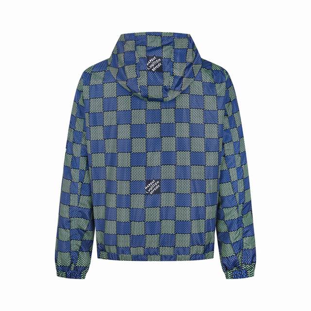 Louis Vuitton 25Fw Damier Monogram Reversible Zipper Jacket. Originally priced at 28, purchased. Both sides are custom-made: one side is 100% polyester blue-green Damier fabric, the other is 100% polyamide jacquard fabric with the logo and classic monogram. All hardware and accessories are custom-made according to the original design, featuring a zipper pull with an engraved logo, raglan sleeves, and kangaroo pockets. The entire Damier pattern is meticulously positioned and stitched by hand, aligning the pattern left and right according to the door. The reverse monogram side is also parallel and aligned. Size: 46-52.