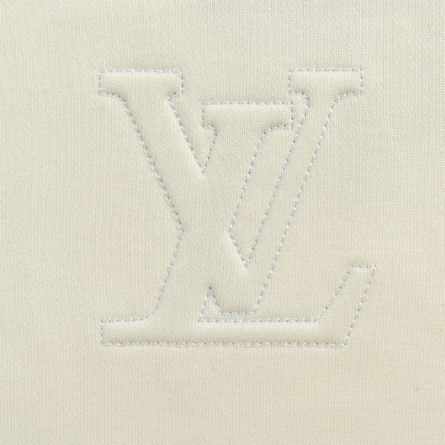 . Features: Made of 480g pure cotton double-yarn fish-scale terry fabric. Dust-free singeing on the surface and hair-absorbing, environmentally friendly active dyeing on the bottom. 3D embossed Lv lettering. Edge embroidery. Double-needle seam stitching. Original main label, washable hangtag, and moisture-proof paper packaging. Colors: White, Black. Sizes: S-Xl.