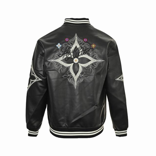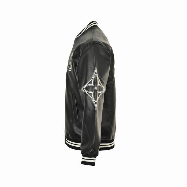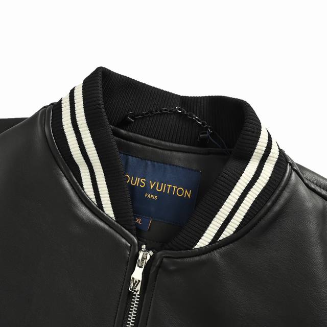 Louis Vuitton 25Fw Embroidered Logo Leather Jacket. This is a new Louis Vuitton 25Ss leather jacket, featuring embroidered Louis Vuitton logo on the chest, sleeves, and back, with a fine texture. Size: M-XL.