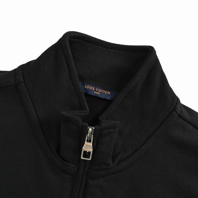 Louis Vuitton 25Fw Embroidered Monogram Half-Zip Sweatshirt. Made with original, exclusively customized 420g heavyweight double-sided plain weave air-layer fabric, extremely comfortable and warm, 100% top-quality fabric unlike anything on the market, shrink-proof, shape-retaining, and pill-resistant. Paired with 430g 2X2 ribbed fabric, the ribs are dyed in the same batch, ensuring no color difference and preventing deformation. Thick knit with tight spinning process. Floral Barinda embroidery on the back. A versatile and stylish pair of trousers, the loose fit is flattering and slimming, suitable for all body types . Color: Black. Size: Xs-L.