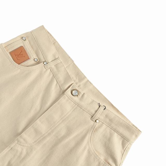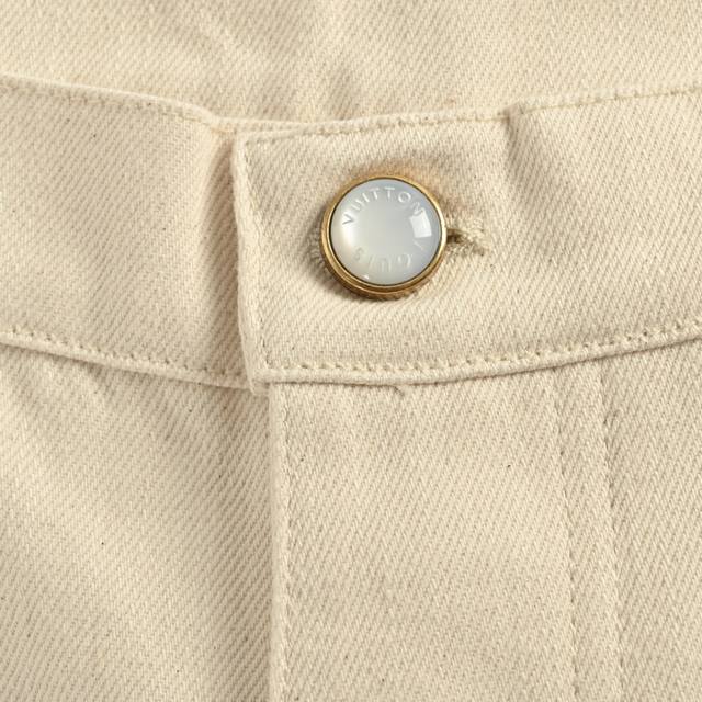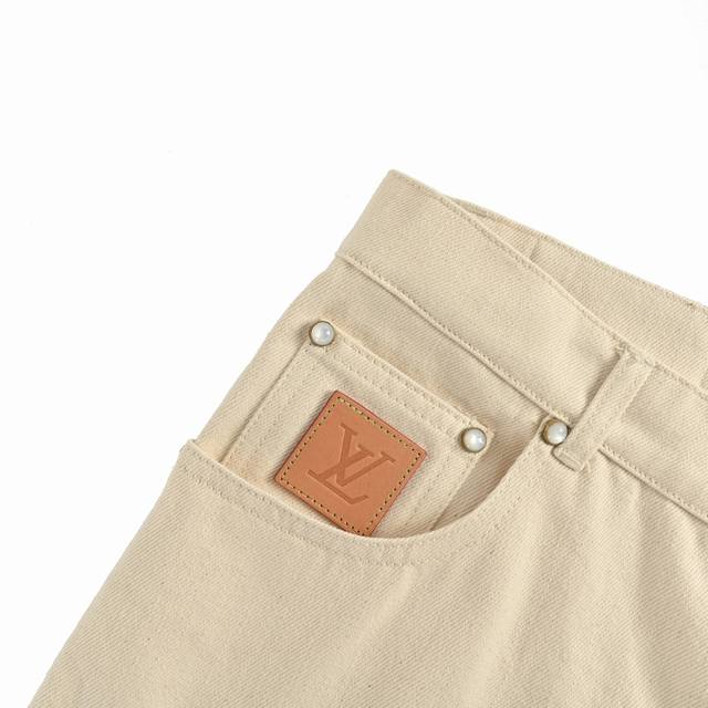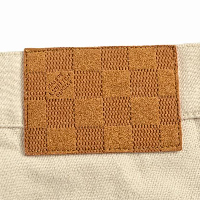 2025 Lv new jeans are made from washed Japanese denim and feature a chic wide-leg silhouette that easily transforms any look. Eye-catching topstitching, embroidered Lv logo on the back pocket, and nubuck patches at the ticket pocket and waist are a testament to the brand's exceptional craftsmanship.